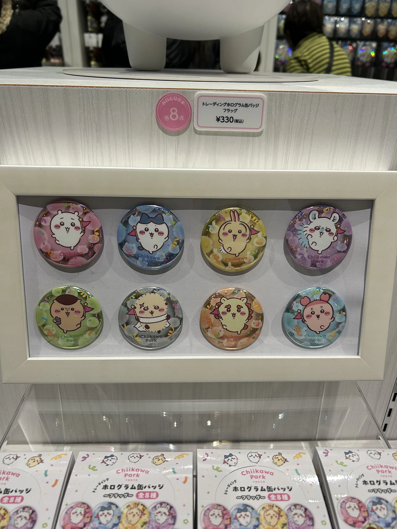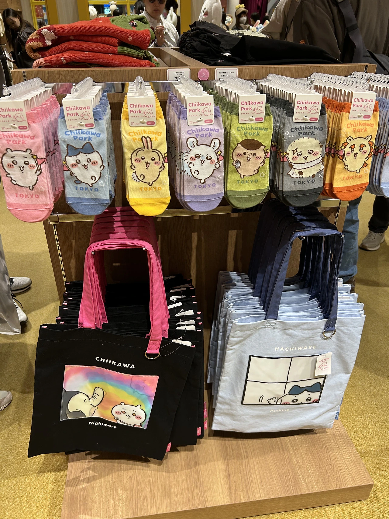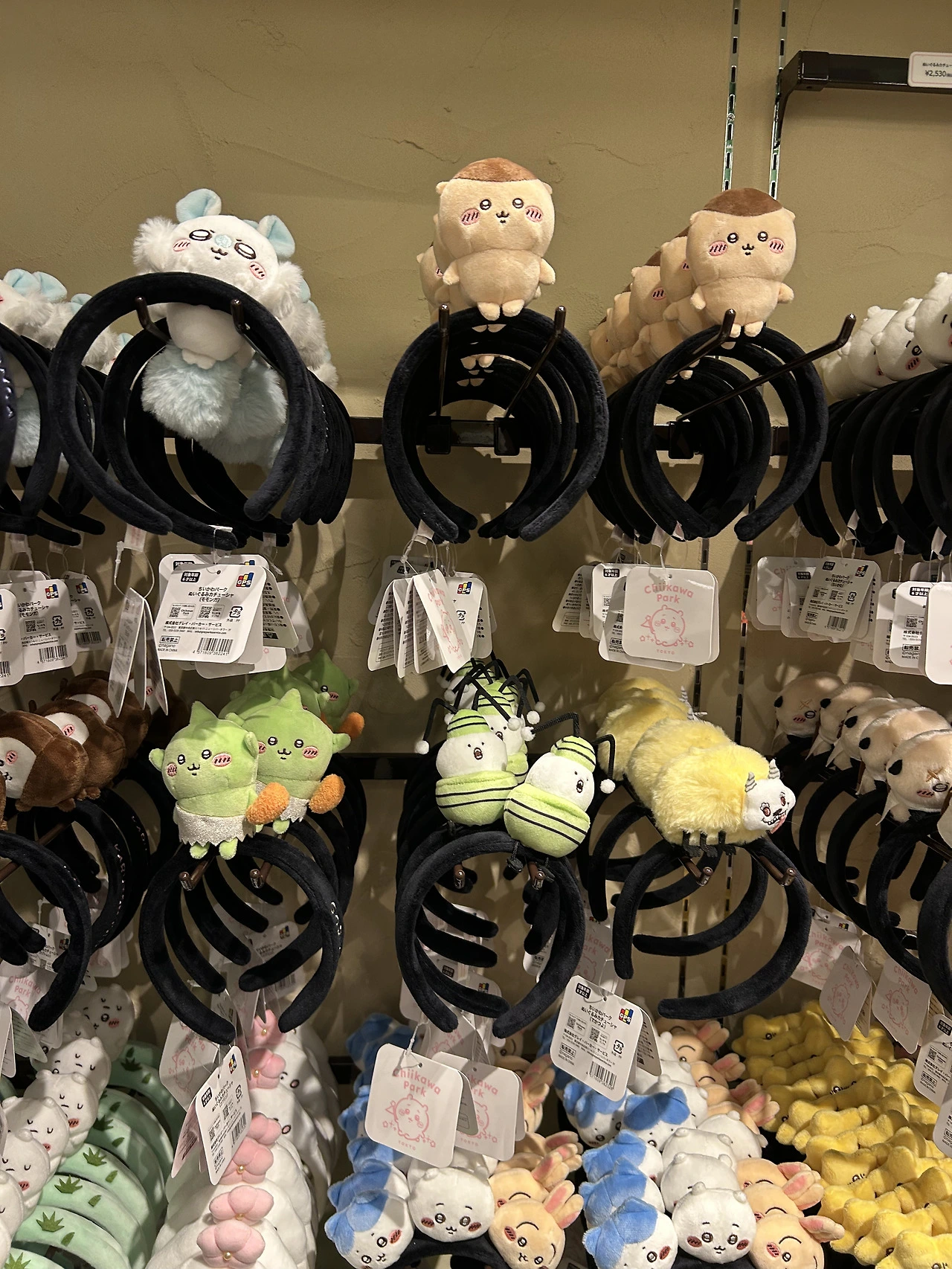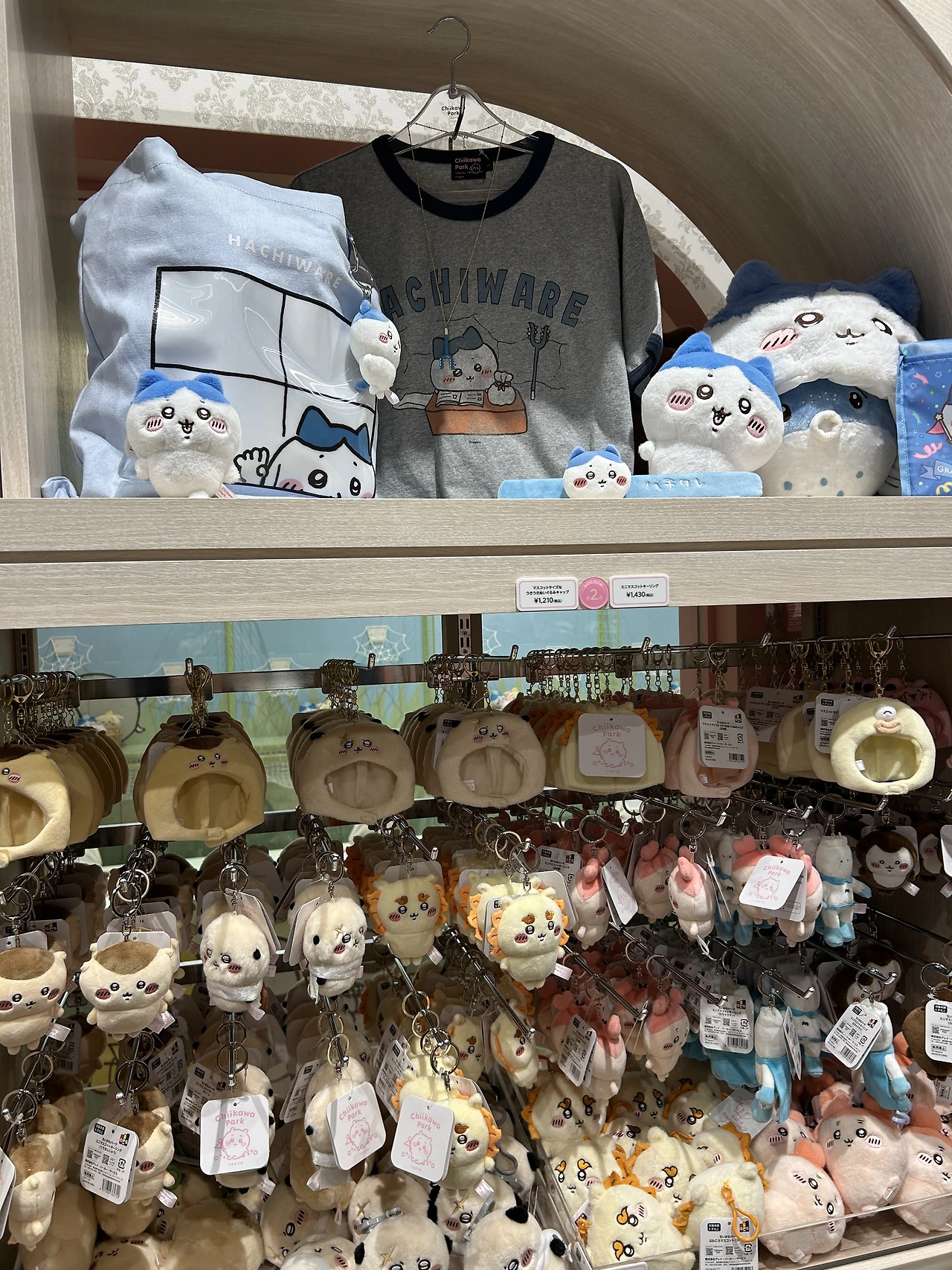 일단 들어가자마자 귀여운 굿즈로 눈이 확 쏠린다. 그중 가장 사람들이 몰려있던 것은 머리에 쓰는 치이카와 모자들. 어린이고 어른이고 할 거 없이 이걸 뒤집어쓰고 있어 정말 귀여웠다. 이걸 일상 생활하며 쓸 수는 없을 것 같은데, 여긴 치이카와 파크고 우리는 모두 작은 치이카와 세상 속 동료니까 다른 사람의 시선 따위 아랑곳 않고 구매하고 쓰고 다닌다. 네, 오타쿠에게 있어 굿즈는 귀여우면 소장 가치가 있고 그 소명을 다하는 거니까요.