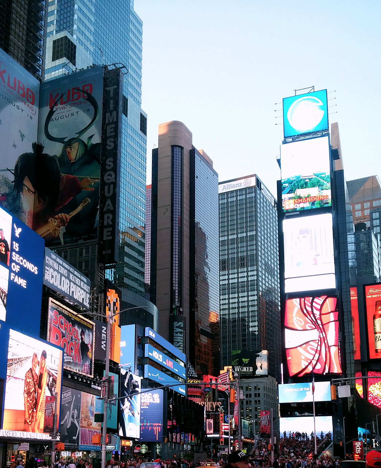 사람들이 뉴욕 하면 떠올리는 전형적인 이미지 중 하나는 타임스퀘어라고 생각한다. 눈이 폴폴 내리는 밤에 사소한 오해로 헤어졌던 남녀가 화려한 전광판이 가득한 타임스퀘어에서 재회하고, 새해 카운트다운에 맞춰 해피 뉴 이어! 하며 뜨거운 키스를 나누는 장면을 영화에서 너무 많이 봐왔으니까!