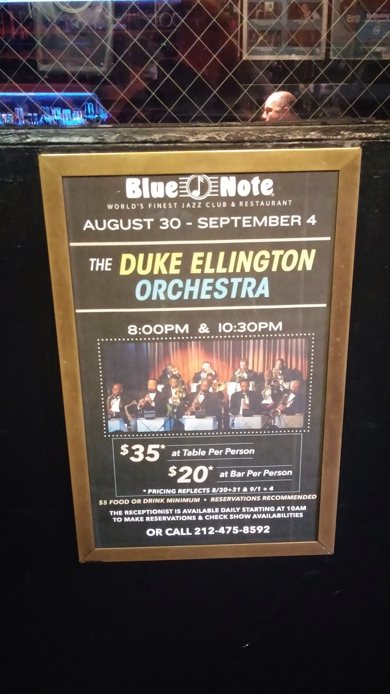 자그마한 곳이라 들어서 예약을 해야 하나 싶어 전날 밤에 부랴부랴 모바일로 블루노트 홈페이지에서 한 명 예약을 걸었다. 결제는 현장에서, 예약하면 예약번호만 달랑 주는데, 엥, 그냥 가면 되나 싶을 정도로 간단하다. 내가 보러 갔던 날은 Duke ellington orchestra가 특별 공연을 했었다. 입구에 들어가면 푸른빛 어두운 조명 속에 명성과는 다르게 소박한 내부가 보인다. 바 자리와 테이블 자리가 있는데 나는 테이블 자리로 예약했기에 안내해주는 사람을 쫓아 무대가 잘 보이는 테이블에 자리 잡았다.