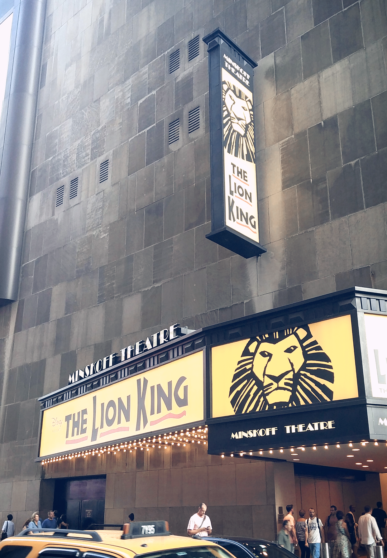 내가 핫도그를 먹으면서 굳이 사람들을 구경하고 있었던 이유는, 기대하던 뮤지컬 라이온 킹 시간을 기다리기 위해서였다. 뉴욕 여행을 별 계획 없이, 몇 가지 사전에 필요한 표만 예약해서 갔었는데, 그중 가장 심혈을 기울인 것이 라이온 킹! 브로드웨이에서 처음 보는 뮤지컬이고 워낙에 좋아하던 작품이다 보니 좋은 자리에서 보려고 오케스트라석 중에서도 앞에서 10번째 열, 가운데 자리로 예약! 부디 티켓값을 해주기를 바라며, 뮤지컬 라이온 킹 공연장인 밍스코프 극장을 찾아갔다. 타임스퀘어의 한가운데 있어서 찾기는 참 쉬웠다.