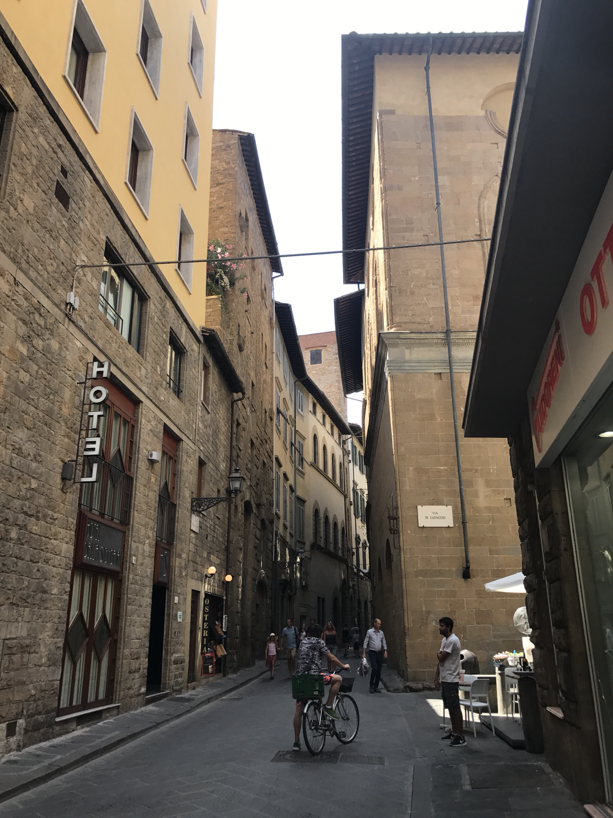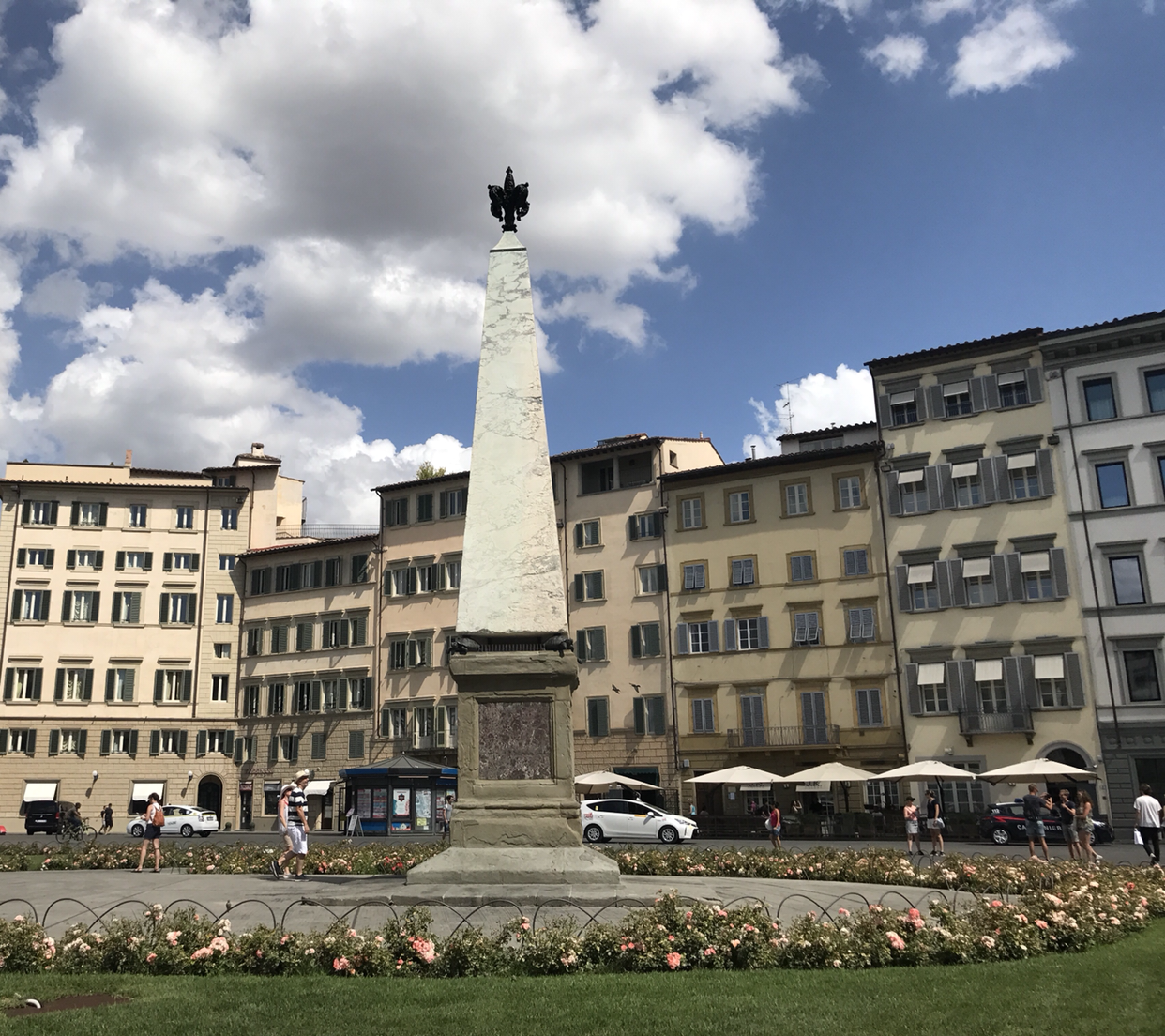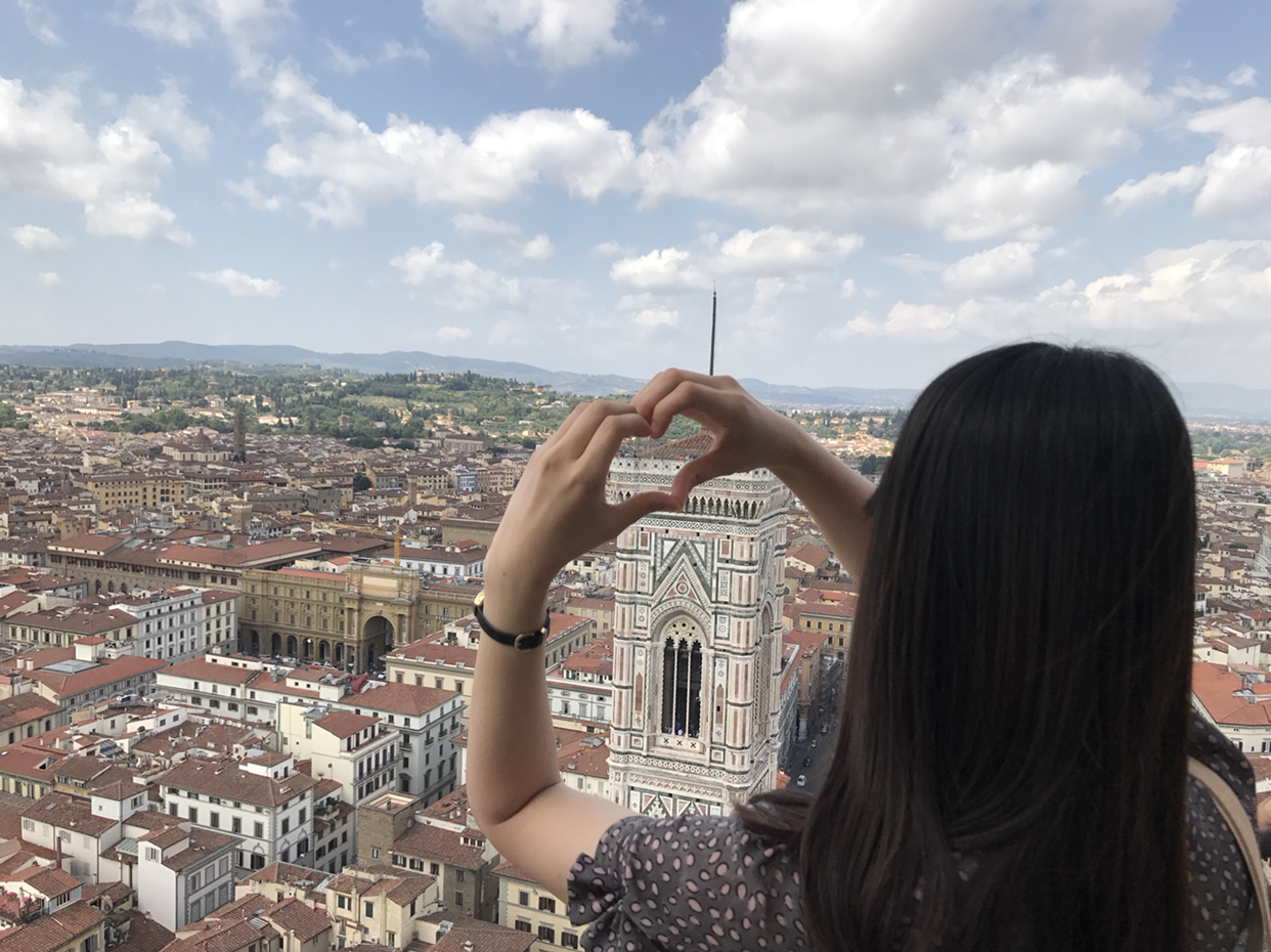 사진은 눈 앞의 아름다움을 십 분의 일도 담아내지 못했다. 아쉬움에 조금이라도 더 피렌체의 이 느낌을 담은 사진을 건지고 싶어 찰칵대 보았으나, 역시나 여기선 그냥 눈으로 충분히 보고 마음에 담아 가는 게 가장 현명한 방법이다. 이 예쁜 걸 지금 나만 보다니 하고 억울해하고 있자니, 옆에 나처럼 원통해하고 있는 한국인 같은 여자분이 눈에 띈다. 장비와 옷차림을 보아하니, 분명히 한국인이다. 혼자 여행 온 사람을 만나 반가워서 말을 걸었고, 서로 사진을 찍어주었고, 같이 점심까지 먹으러 가기로 했다! 나 홀로 여행은 가끔 이렇게 좋은 친구를 만나게 해주는 묘미가 있다.