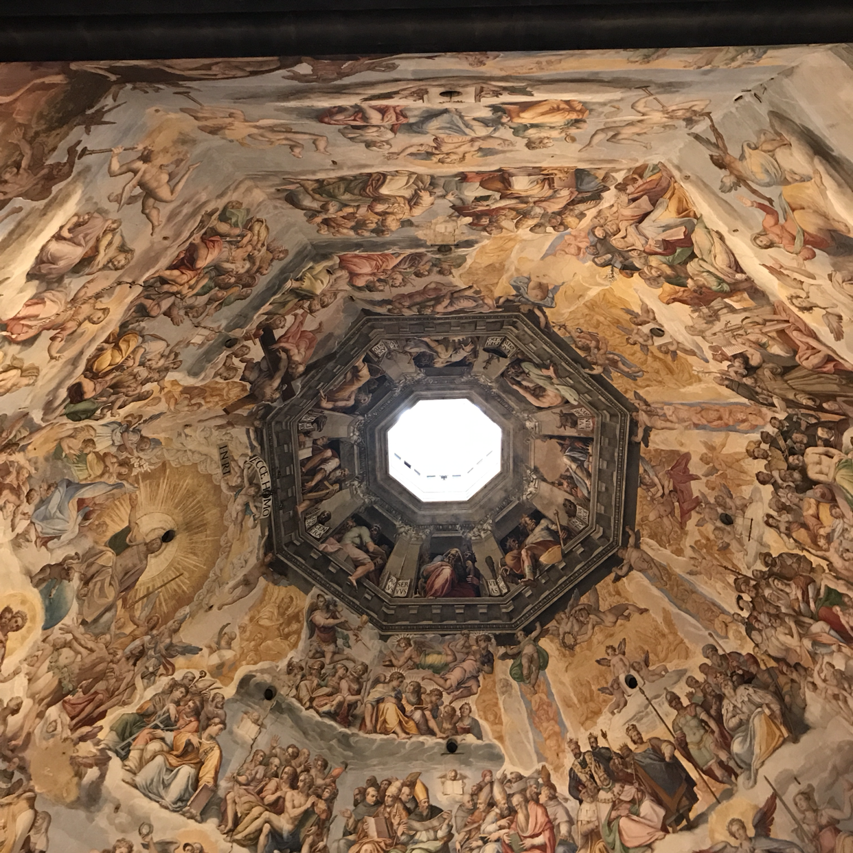 쿠폴라에 올라서는 계단은 생각보다 좁고 가파르다. 중간중간 안내원들이 올라가고 내려오는 사람들의 통행을 조절해 주기는 하지만, 이런 계단은 정신을 바짝 차리지 않으면 넘어지기 십상이다. 내 뒤에 오는 사람들의 속도에 방해되지 않게 적당히 눈치를 보며 오르다 보니 어라, 이 곳 천장화, 너무 아름다운데? 목을 확 꺾어야만 천장이 눈에 들어오는 구조이기에, 좀 모양새는 빠지겠지만 남 시선 신경 쓸 겨를 없이 입 벌리고 하늘을 바라보고 있으니, 내 뒤 줄줄이 따라오던 사람들도 다 같이 목을 꺾고 입을 벌리고 오 마이 갓, 어메이징을 외치고 있다. 계단 오르며 힘들었던 것도 잠시, 천장화를 바라보고 나니 이 쿠폴라에 오르면 또 얼마나 아름다운 풍경이 눈에 들어올지 더 두근거리기 시작했다.