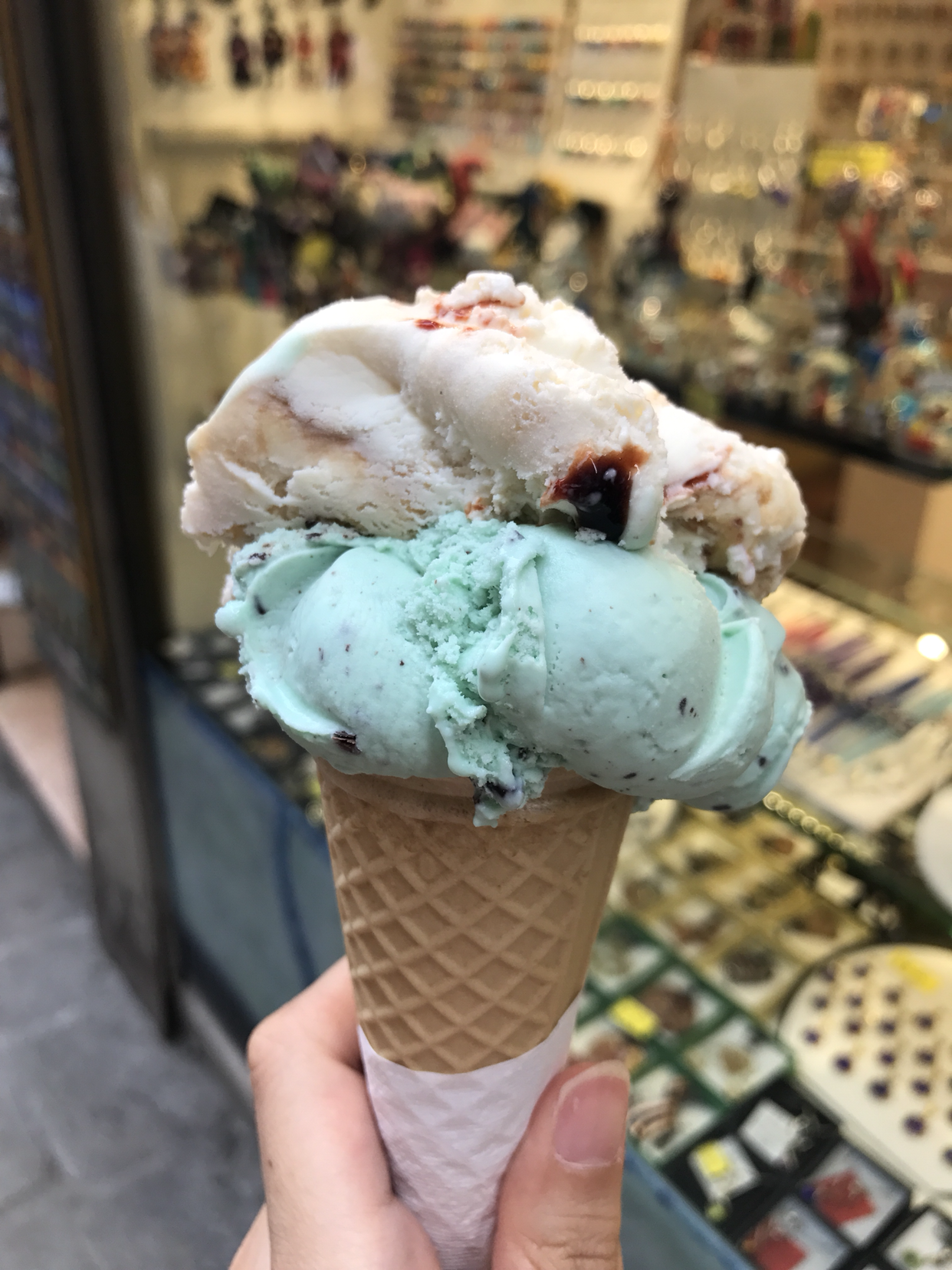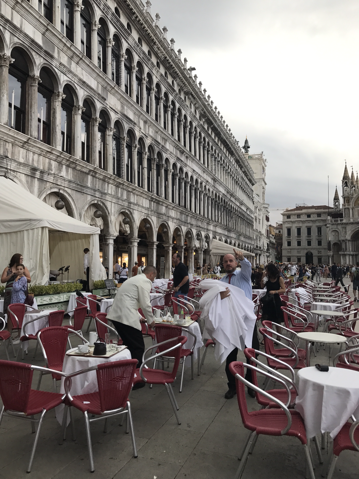 산마르코 광장에는 카페 플로리안을 비롯한 유서 깊은 카페들이 있다. 이 곳 카페들은 4중주 라이브 연주를 하면서 관광객들의 귀를 호강시켜 주는데, 300년 넘은 역사를 가졌다는 카페 플로리안이 가장 유명하긴 하지만 다른 카페들도 만만치 않았다. 어쩌다 보니 여행 내내 카페 플로리안만 빼고 다른 카페들에서 커피를 마셨다. 카페에는 자릿세 개념이 있어, 카페 내 좌석에서 마시는 것과 테이크 아웃하는 가격이 다르다. 카페 안과 테라스 좌석의 메뉴 가격도 다르다. 카페 좌석이 낭만적이지만, 이 곳은 어디에 걸터앉아도 분위기가 살아나는 베네치아라는 거. 더 많이 보고 싶은 마음에 에스프레소를 테이크 아웃해서 바다를 마주 보는 계단에 걸터앉아 킁킁 향을 맡다 조심스레 한 모금 머금어 보았다. 커피 한 모금에 이 곳 분위기 한 스푼 얹으니 이 순간이 그렇게 달콤 쌉쌀할 수가 없다.