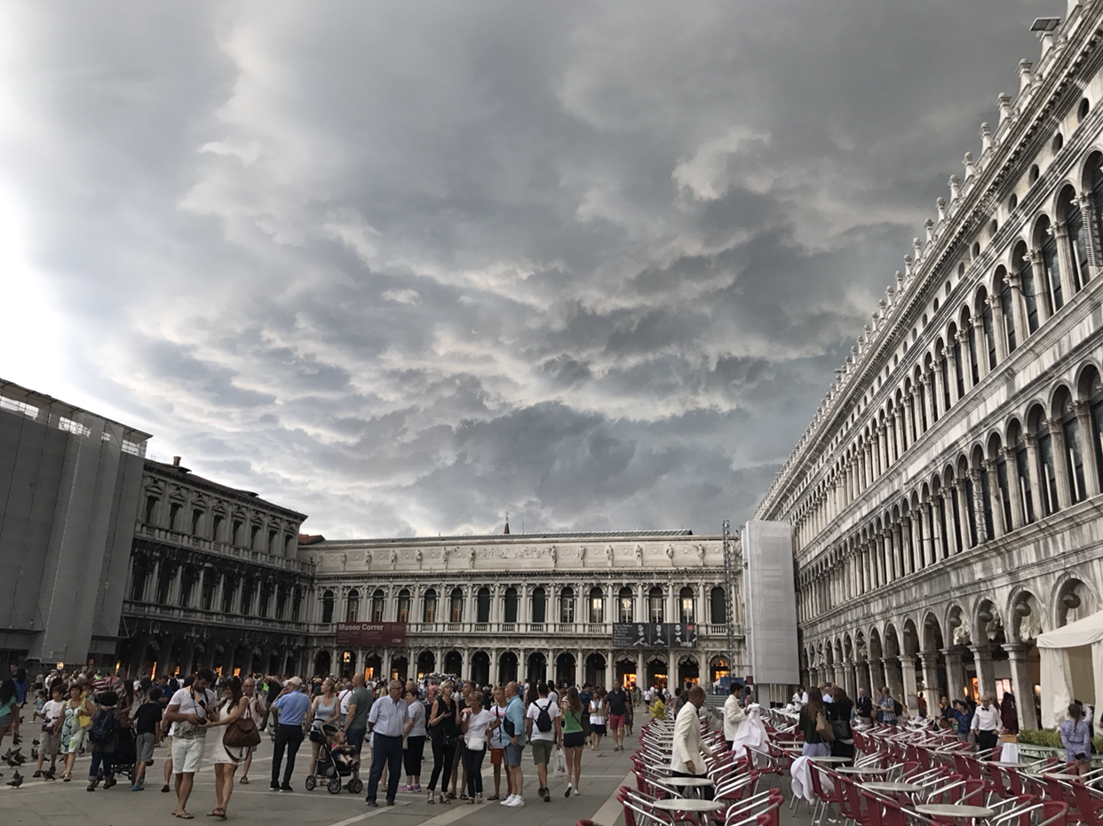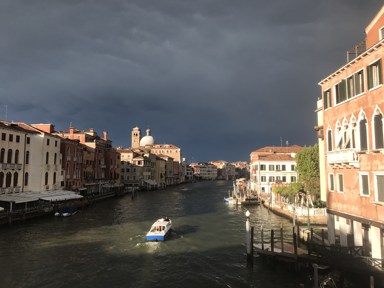 짐 속의 옷들만 가볍게 정리해놓고, 창문을 열어보니 구름이 신기하게 뭉쳐 있었다. 오늘은 가볍게 본섬을 둘러볼까나 하는 생각으로 선크림과 3단 우산만 챙겨 들고 나왔다. 호텔 옆 카페테리아에서 교통권을 판다는 정보를 입수해서, 72시간 권을 하나 샀고. 호텔 바로 앞에 본섬 쪽으로 가는 버스가 있어, 버스를 올라타고 카드를 센싱 하고서 대여섯 정거장 지났을까. 종점이 베네치아 본섬이라, 사람들이 다 우르르 내릴 때 함께 내렸다. 이곳이 베네치아의 중심인가! 하며 속으론 매우 신이 났지만, 너무 유난스러운 관광객처럼 보일까 최대한 절제하며 버스에서 내려 땅을 밟은 역사적인 순간. 만면에 떠오르는 미소와 벌름거리는 신난 콧구멍을 보면, 나는 누가 봐도 영락없이 베네치아 처음 온 한국 관광객이었을 거다.