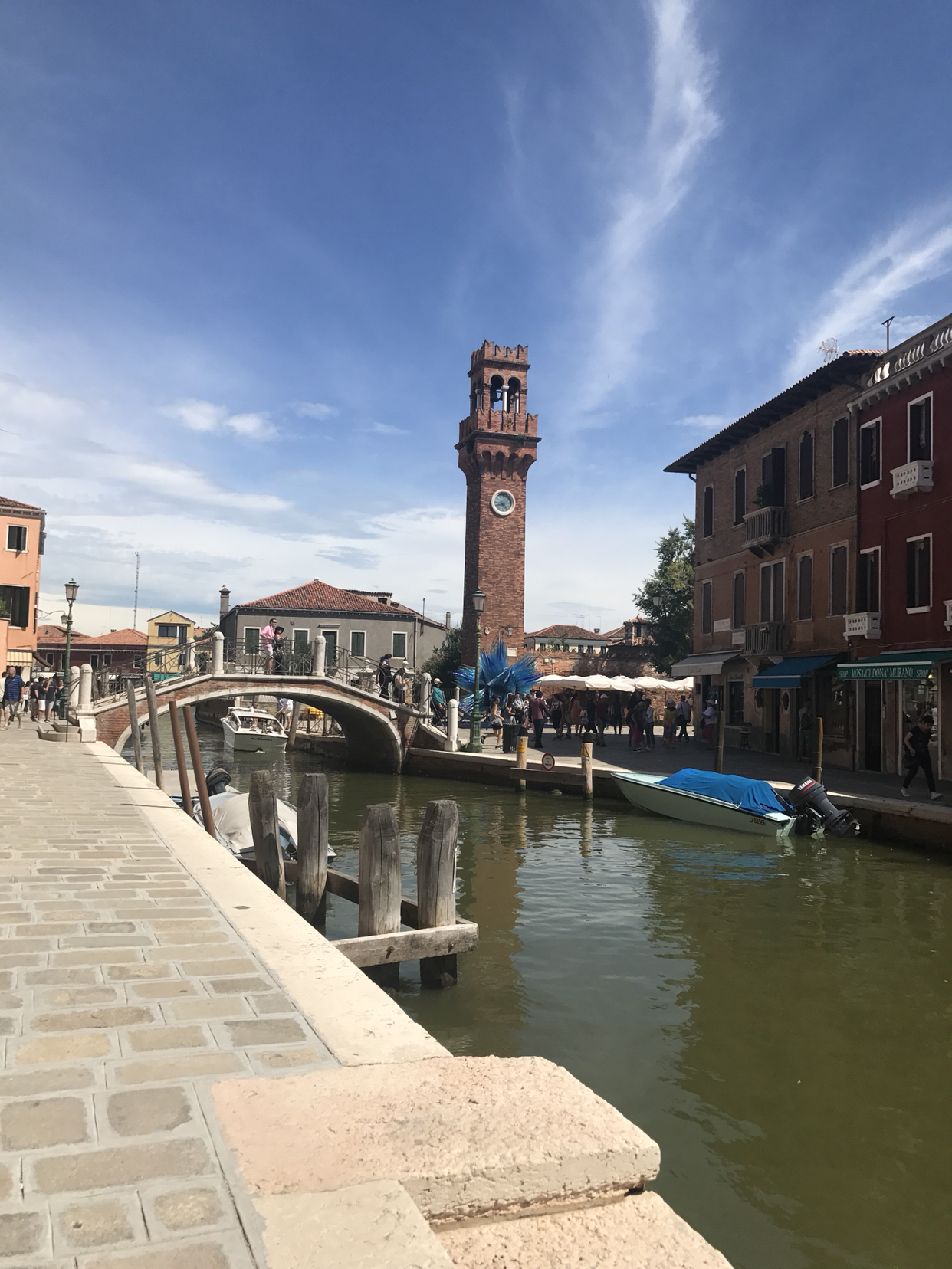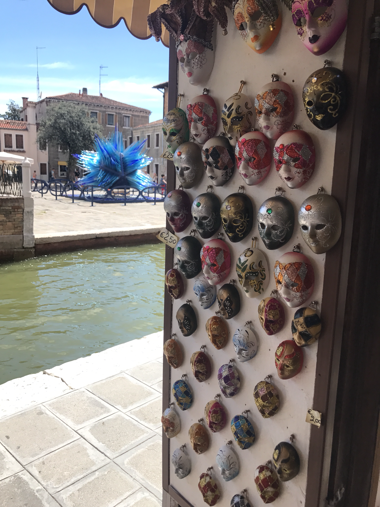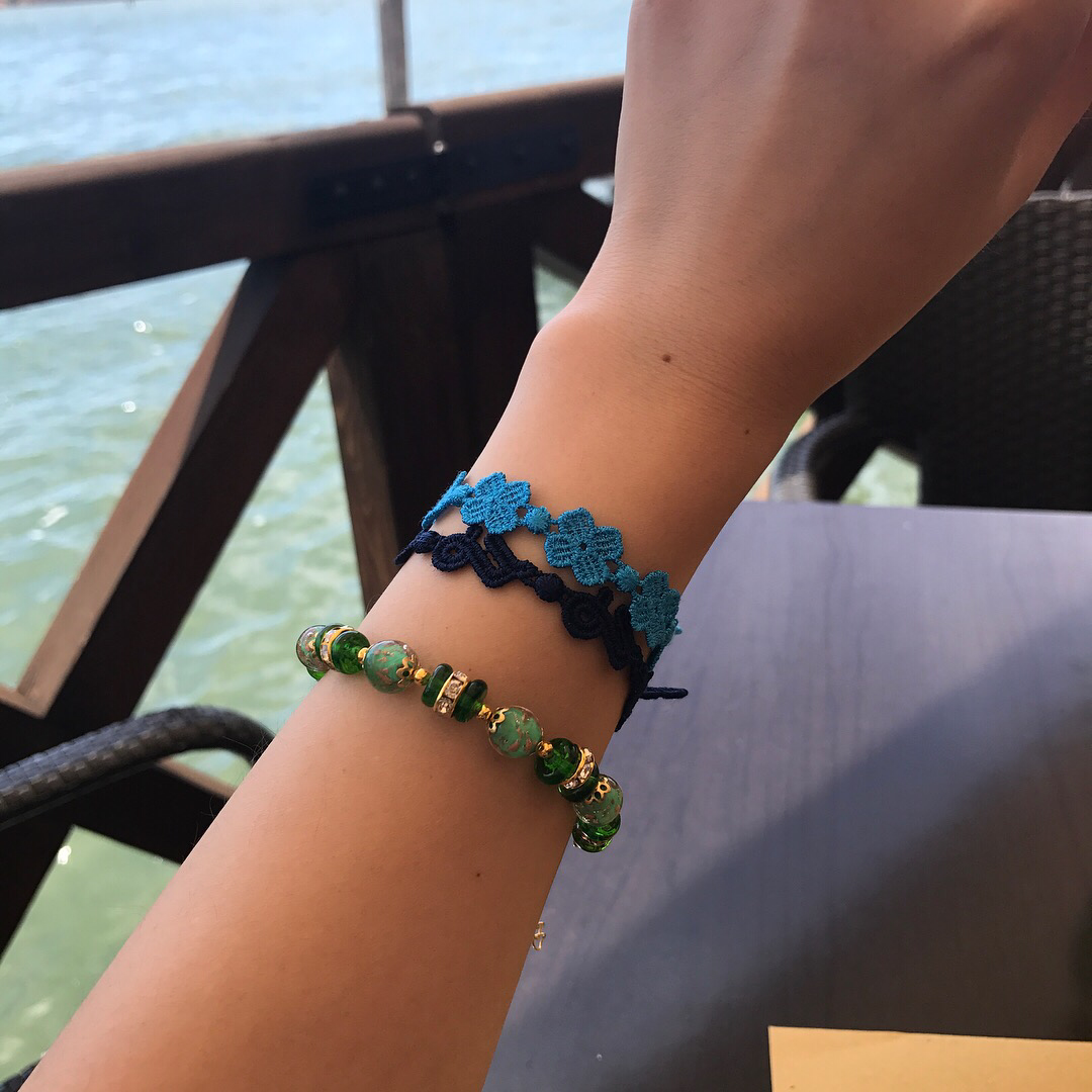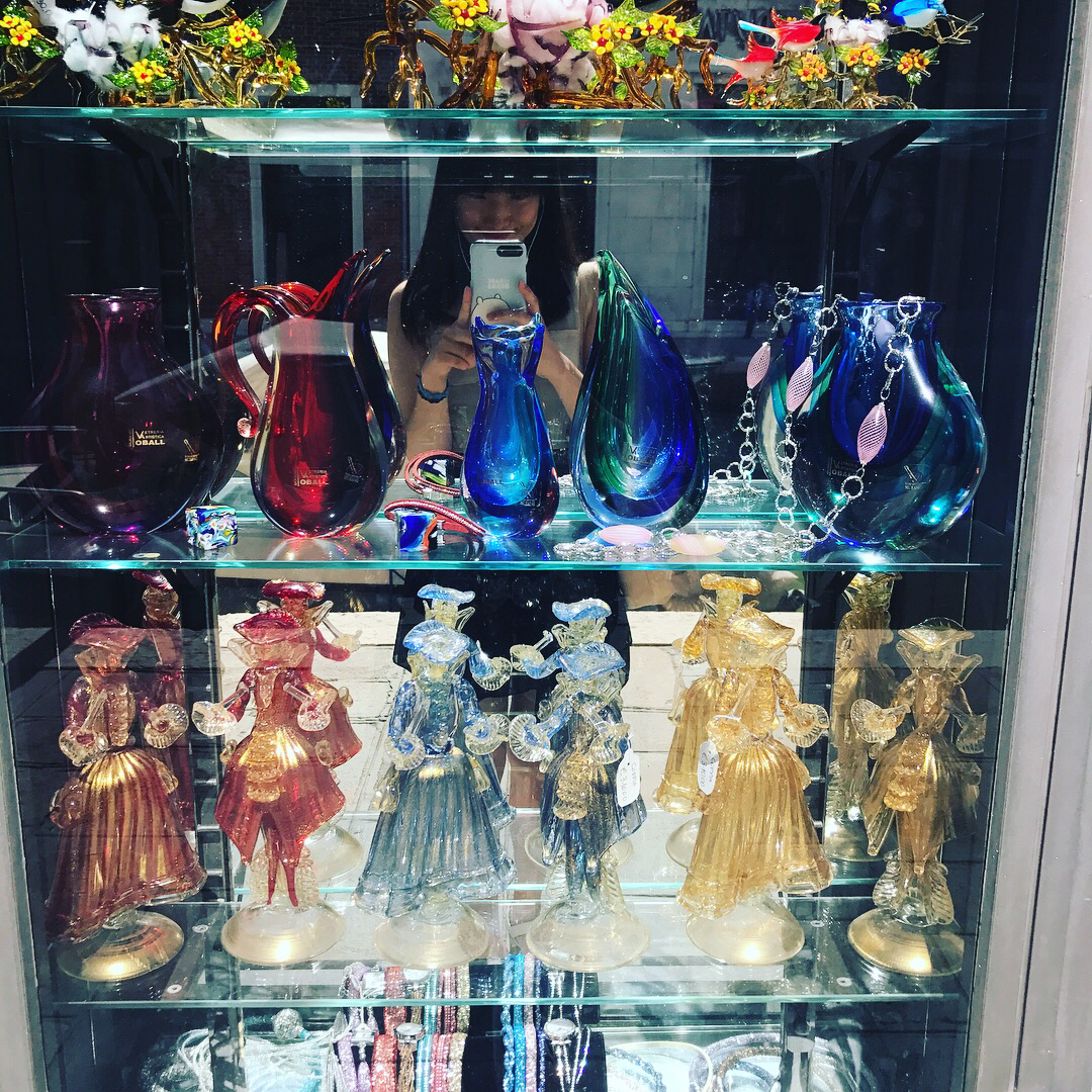 가게마다의 특색을 담은 커다란 인테리어용 시계, 화병, 조명등 같은 것에서부터 아주 조그마한 장식품들까지 눈길을 사로잡는 공예품들이 가득했다. 어떤 가게에서는 한 모퉁이에서 장인이 직접 불을 쏴 가면서 공예작품을 만드는 모습까지도 볼 수 있었다! 그 앞에서 관광객들이 다닥다닥 붙어 오오-하는 감탄사를 방청객처럼 내뱉고 있으면 부담스러울 법도 한데, 장인은 아무렇지도 않은 듯 작품에만 집중했다. 역시, 오랜 세월 한 길을 걸은 이는 다르구먼! 하면서 존경의 박수를 건네고서는 사 갈만한 기념품이 없을지 계속 두리번거렸다. 유리 운송의 부담을 이겨내기에 나는 너무나도 파괴적인 사람이라, 조그만 목걸이와 유리공예 팔찌 하나를 사고서 만족해야 했다. 걷다 보면 액세서리를 파는 가게들도 많이 보이는데, 가격은 비슷한 편이었던 것 같다.