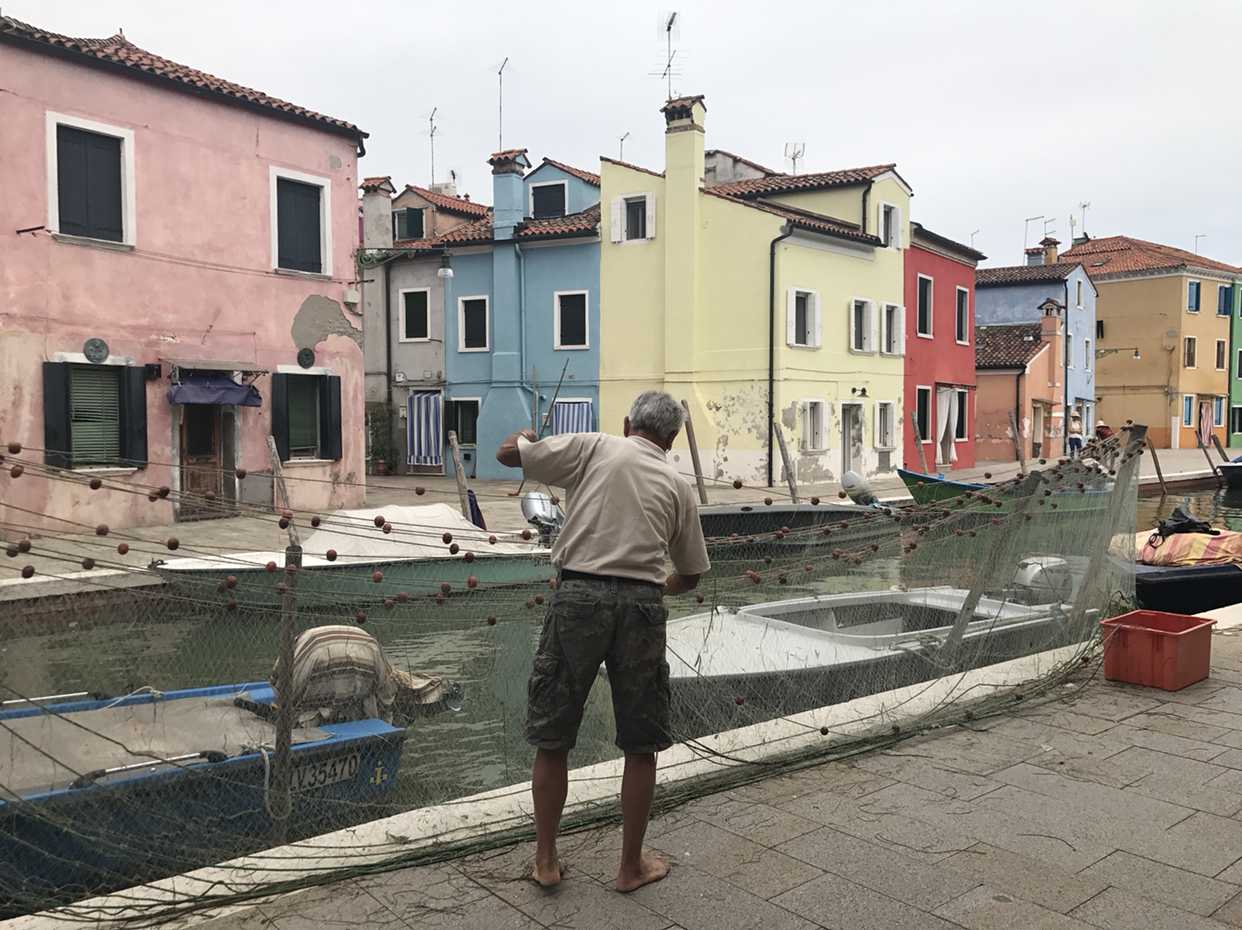 무라노가 유리공예의 성지라면, 부라노의 전매특허는 레이스와 알록달록한 집이 늘어선 풍경이라고 할 수 있다. 부라노는 또 부라노대로 이쁘구먼! 하고서 섬에 내리고 보니, 베네치아는 섬마다 '너는 이거 특화해'하고 지정해주기라도 한 게 있는지 궁금해졌다. 어쩜 이리 섬들마다 특기와 매력이 다채로운지. 궁금함을 참지 못하고, 이탈리아 사람처럼 생긴 이에게 왜 부라노는 레이스가 유명하게 되었는지 물어봤다.