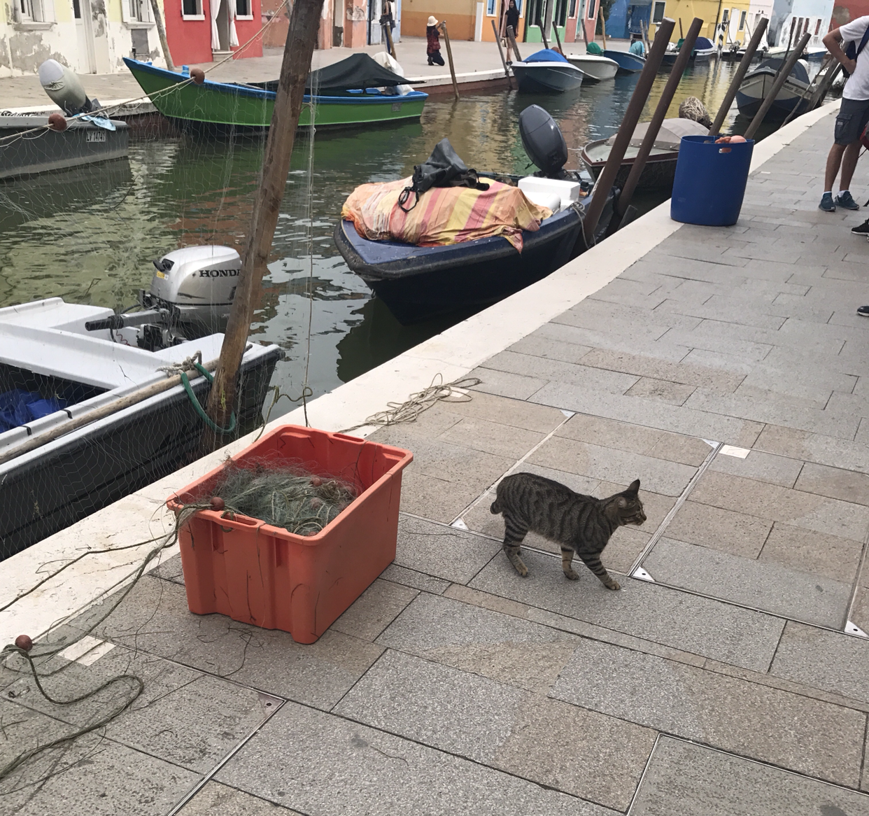 현지 주민들에게 방해가 되지 않도록 먼발치서 사진을 찍고 있는데, 여기저기 그냥 막 찍어도 카메라에 담기는 모습은 이쁘다. 그러나 역시 눈으로 직접 보는 것만 못했다. 걷고 있자니 어느 집 앞에서 그물을 말려놓고 있는데 그 앞에 고양이 한 마리가 물끄러미 그물을 보고 있다. 가까이 다가서도 놀라는 기색이 없는 걸로 봐선, 그냥 사람들을 별로 신경 쓰지 않는 애였던 것 같다. 얘, 넌 정말 좋은 곳에 사는구나, 여기서 생선은 마음껏 먹을 수 있니? 하고 물으며 옆에 쭈그리고 앉으니 날 참 한심하게 쳐다본다. 뻘쭘해지는 마음에 자리를 털고 일어서서 걷는데, 아주 빨간 집이 눈앞에 딱 나타났다. 저마다의 색깔을 가진 집들이 참 많았지만, 나는 이 빨간 집이 제일 마음에 들었다. 나중에 여기서 살게 된다면 나는 저런 식으로 내 집을 칠해봐야지 하는 말도 안 되는 상상을 해보았다. 정말 이쁜 곳이었다.