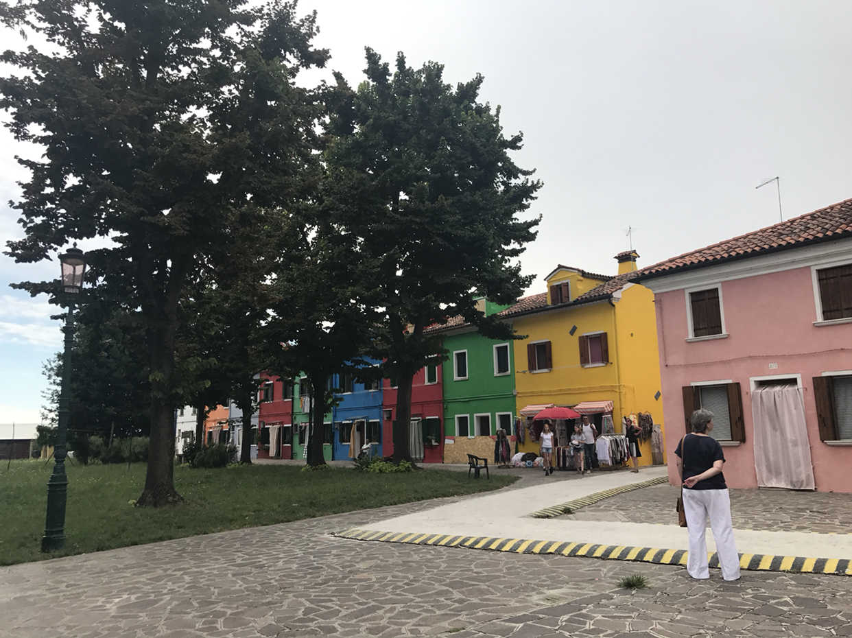어깨에 두르는 숄부터, 부채, 앞치마, 티셔츠, 아기 옷 등등 참 예쁜 레이스들이 많다. 하나 사갈까? 싶어 살펴보니 가격이 만만치 않다. 다 정성 들여 만든 수제품이라 그런가. 무라노에서 유리공예는 너무 커서 못 샀는데, 이 곳의 레이스는 너무 비싸서 못 사는구나 흑흑하고 돌아서서 보니 눈앞에 펼쳐진 알록달록한 집들의 풍경이 또 일품이다. 그래, 사진이라도 많이 찍자 하는 생각에 씩씩하게 발걸음을 옮겼다. 마을 사람들이 합심해서 이 섬의 집들을 알록달록하게 꾸몄는지, 비슷한 색깔의 집이 하나도 없다. 아이유가 뮤직비디오를 여기 배경으로 찍었다더니, 과연 그럴만했군 싶다.