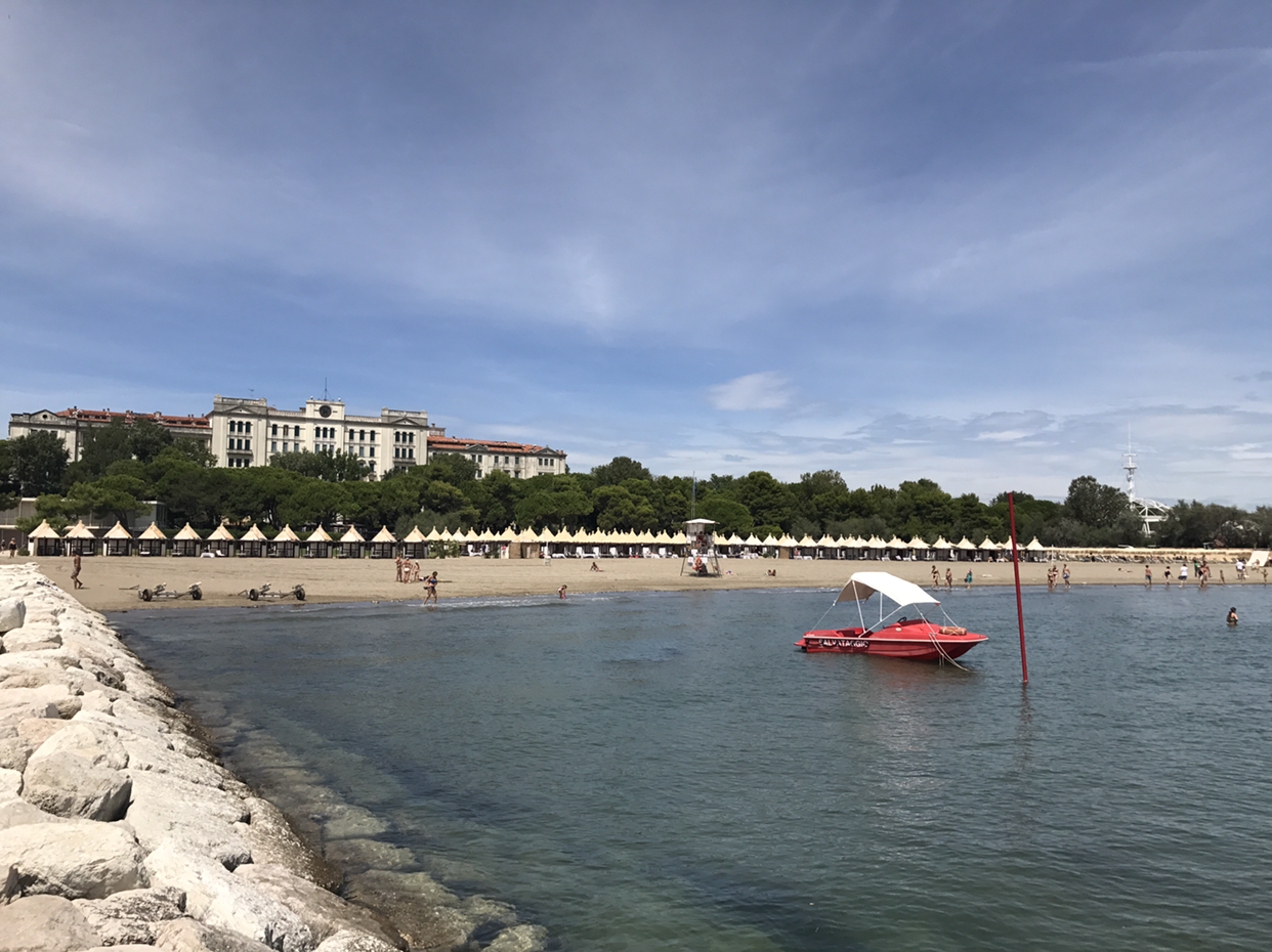 오늘은 리도섬에 가기로 마음먹었다. 리도섬은 베니스 국제영화제가 열리는 곳으로도 유명한데, 영화제 하는 시기는 아니었지만, 그 기다란 섬을 따라 자리 잡은 해변에서 노닥거릴 심산이었다. 선블록과 피렌체에서 산 셜록홈스 소설, 메모지와 펜만 챙겨 들고서 리도섬으로 향했다. 통통거리는 바포레토를 타고 내리니, 리도섬은 휴양섬의 분위기가 흘러넘쳤다. 자, 해변으로 가보자- 하고서 무작정 섬의 가장자리로 씩씩하게 걸어 나갔다. 눈 앞에 보이는 건물이며, 조경에선 여유와 고급스러움이 느껴졌다. 이 섬은 휴양섬으로도 유명하다더니 과연 그런 고급스러운 분위기가 흘렀다.
