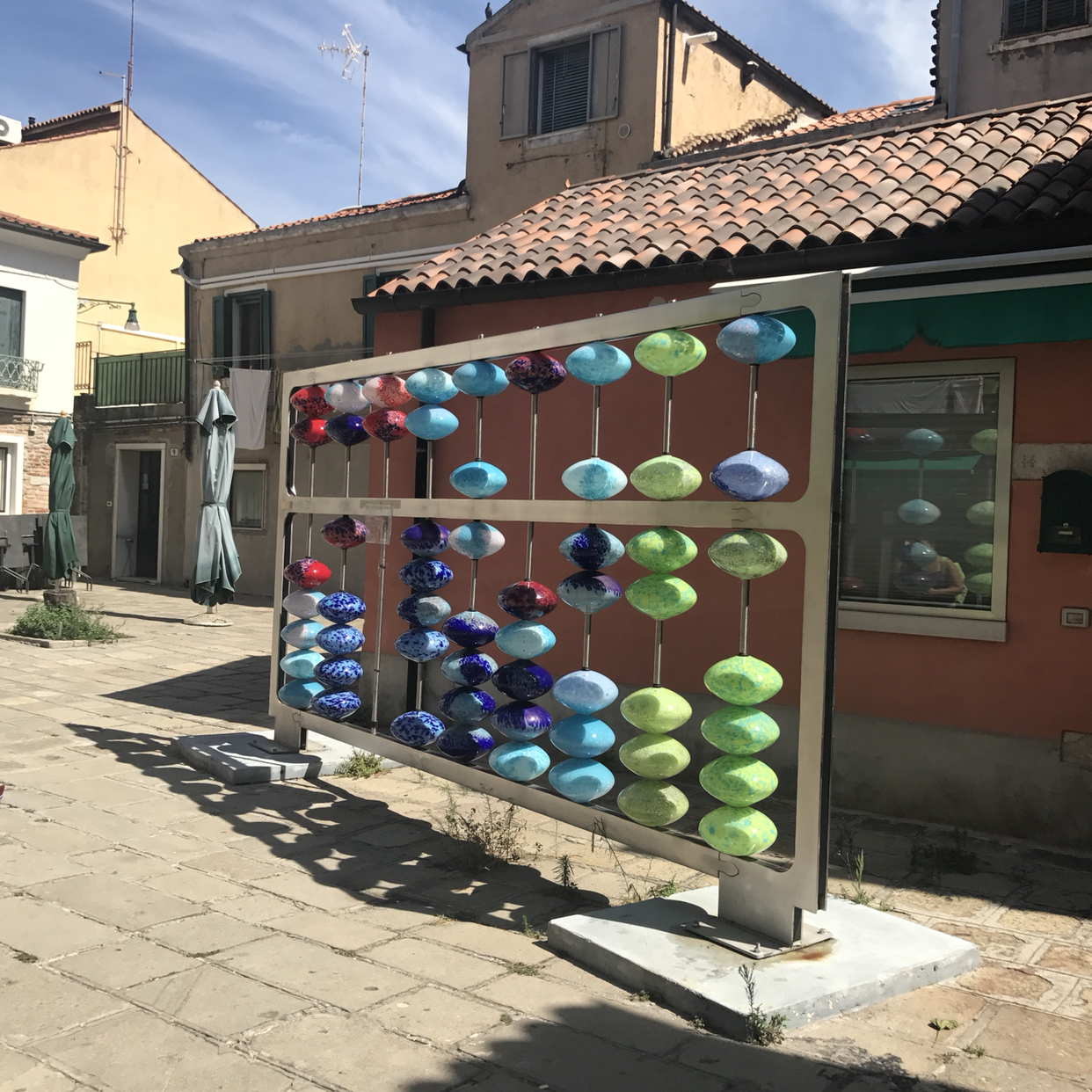 무라노 섬을 걷다 보면 단순히 공예 상품뿐 아니라, 커다랗고 알록달록한 조형물도 마주치게 된다. 햇살을 받아 물결 방향대로 빛이 나는 바다와 함께, 정교하게 커팅된 유리와 크리스털이 빛을 내는 모습은 이 장면 그대로 캡처해서 머릿속에 저장하고 싶을 만큼 예뻤다. 태양이 없어진다면 이 순간을 하늘에 띄워놓으면 태양 빛 못지않게 세상을 빛낼 텐데 하는 만화 같은 생각을 해본다.
