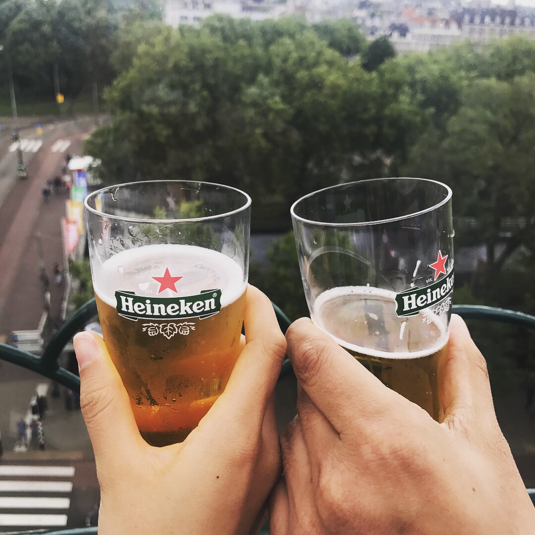 혼자 놀고 있으니, 짓궂은 크루가 혼자 온 다른 사람이 또 있다고 둘이 같이 다니라며 부추긴다. 아, 아니 저기 그렇게 까지 과하게 친절하게 관람객들을 케어해줄 필요는 없다고. 뻘쭘하게 웃으며 인사를 나누고 보니, 이 친구는 터키에서 왔다. 의사인데 몇 개월 암스테르담의 어느 병원에서 진료를 하며 머물게 되었단다. 그러면 혼자 맥주 마시면 재미없으니 같이 한 잔 할까 하고선 루프탑으로 올라갔다. 여기서 입장하며 받은 배지를 내고 하이네켄 맥주를 받을 수 있다! 눈 앞에 펼쳐진 암스테르담 풍경을 안주 삼아 맥주를 들이키니 이토록 시원한 한 모금이 또 없다. 맥주를 마시며 이 친구의 터키 이야기를 들었고, 나는 한국 이야기를 했다. 이렇게 외국인 친구들과 이야기를 하다 보면 가고 싶은 곳이 정말 많아진다.