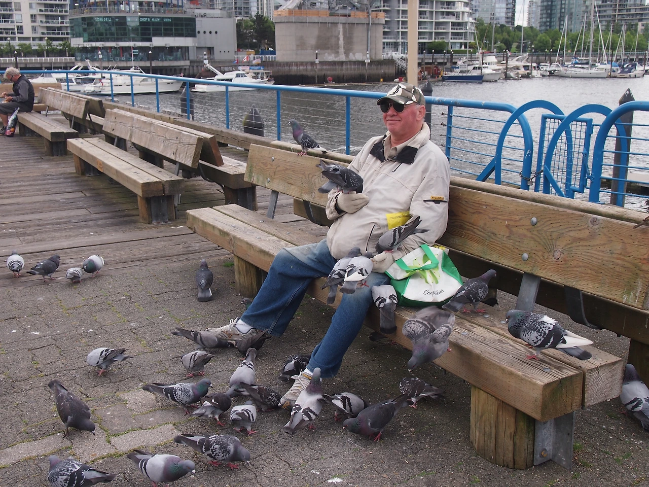 저기 벤치에는 비둘기들의 대부로 보이는 아저씨가 앉아 비둘기들에게 먹이를 주고 있었다. 밴쿠버에 와서 느끼는 것들 중 하나는 사람들이 동물들을 정말 좋아한다는 것이다. 반려견과 산책하는 사람들이 많고, 작은 새들이나 청설모들을 위해 나무에 먹이집을 만들어 놓은 것도 심심찮게 찾아볼 수 있다. 나무와 공원이 많은 밴쿠버에서는 종종 스컹크와 코요테도 발견되곤 한단다. 이 도시 자체를 식물, 동물들과 사람들이 함께 머무는 곳이라고 인식하는 것 같았다. 그러다 보니 환경을 훼손하며 개발하는 경우도 드물고, 사람들의 마인드에 평화, 공존과 같은 키워드들이 자연스레 자리 잡게 되지 않았을까 싶다.