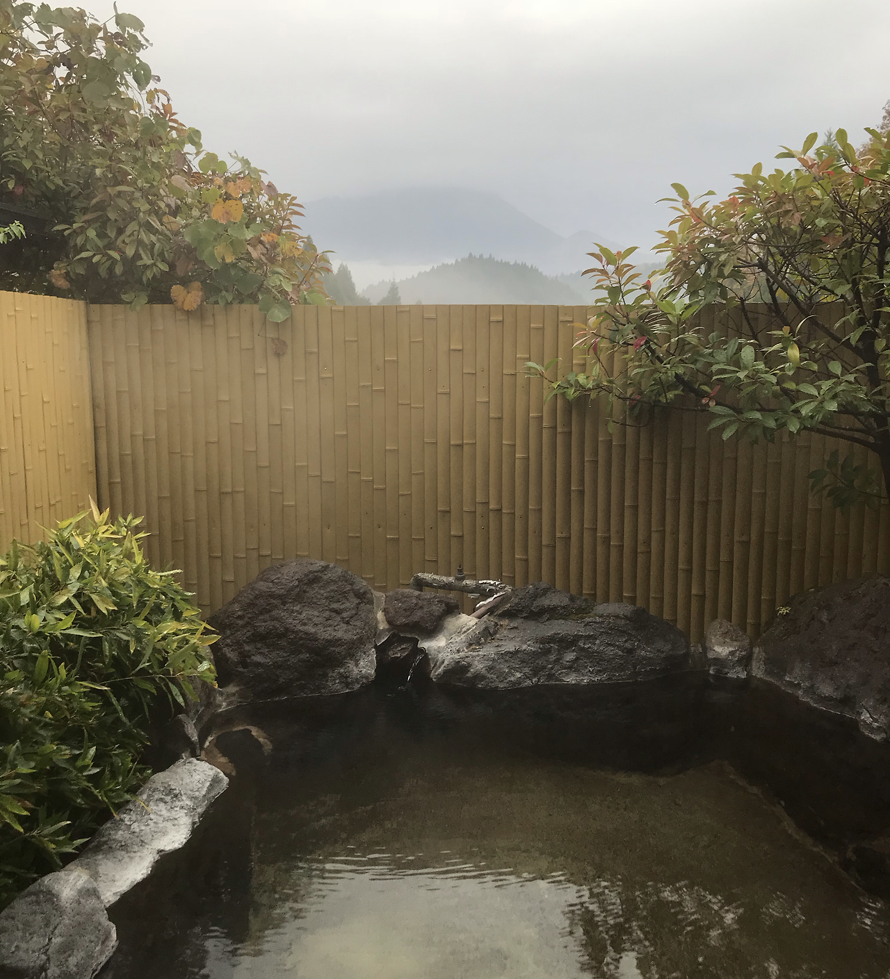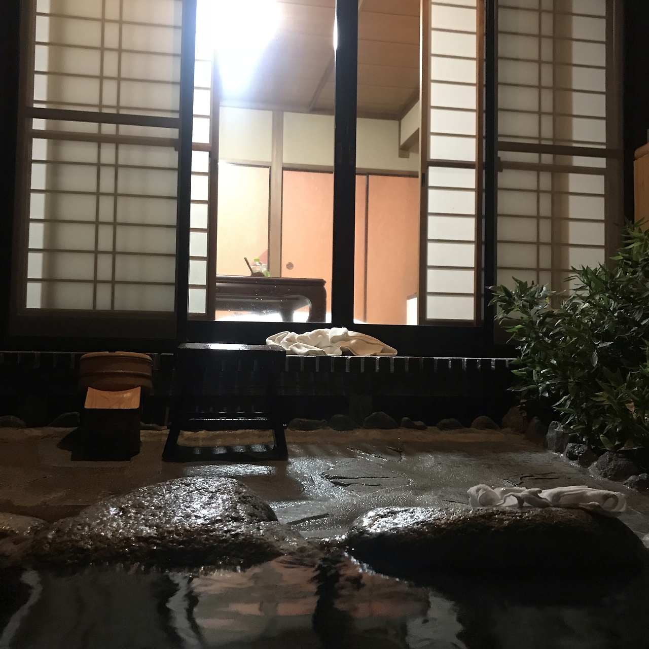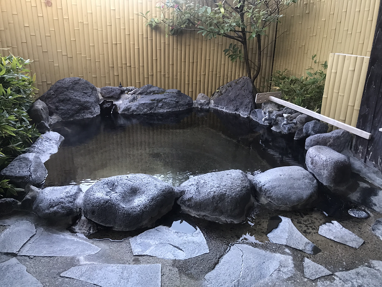 더 추워지기 전에 샤워하고 온천탕에 들어가야지 싶어 수건들을 챙기고 노천탕으로 나갔다. 개별 노천탕이라 머무는 동안 언제든 내가 원하면 온천을 할 수 있고, 누구의 눈치도 안 봐도 되는 공간이라 좋았다. 탕이 있는 곳은 말 그대로 야외인지라 샤워를 하면서는 조금 추웠지만 탕 속에 쏙 들어가 몸을 담그니 ‘어후~’하는 감탄사가 절로 나온다. 얼굴을 시원하고 몸은 뜨끈한, 기분 좋은 이질감.