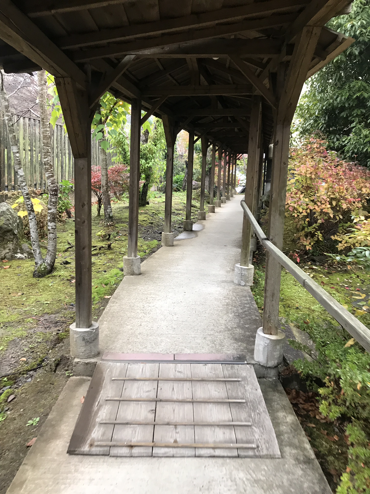 다른 사람들은 저마다 료칸 차가 와서 데려가는데 나는 10분이 지나도록 감감무소식. 역 앞에서 고객을 찾고 있는 다른 료칸 직원에게 내 료칸 이름을 대며 혹시 여기 차는 아직 안 왔냐고 여쭤보니, 친절하게도 우리 료칸에 전화해서 손님이 기다리는데 차가 출발했냐고 여쭤봐 주신다. 감사인사를 5번쯤 하고 나니, 우리 료칸의 차가 도착했다. 차가 좀 막혀서 늦었다며 미안하다고 연신 사과하시는 아저씨에게 ‘아니요, 괜찮습니다’하는 대화를 하면서 십여분을 달렸을까, 정말로 도로와 산 밖에 없는 고립된 곳의 료칸에 도착했다.