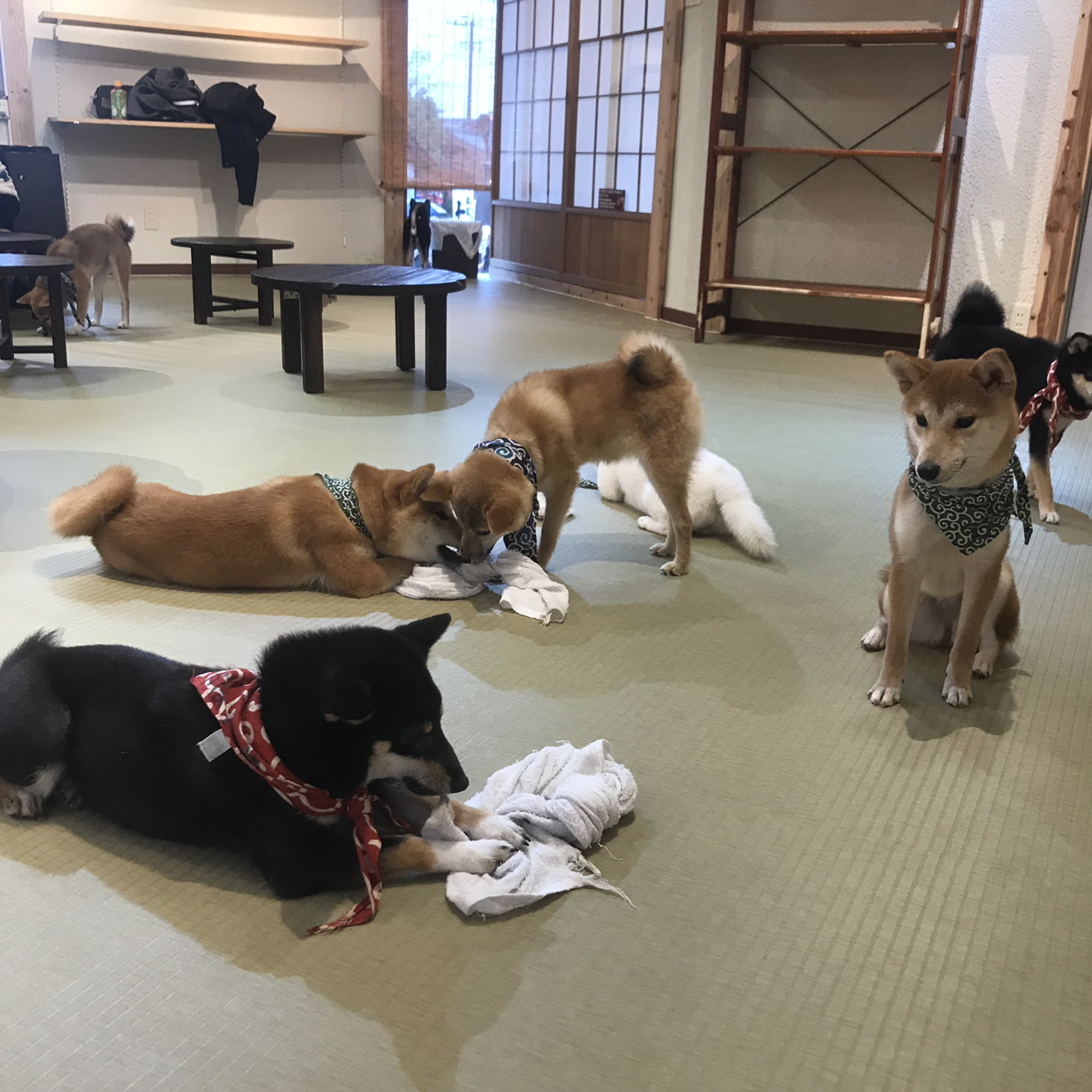 마베시바는 일본 전통견인 시바견 중에서도 덩치가 작은 시바견 종류를 말한다(‘마메’는 일본어로 ‘콩’이라는 뜻!). 이용시간은 30분, 한국의 애견카페들처럼 차 한잔을 내어주는데 차이점이라면 마루처럼 펼쳐진 다다미 방에 나랑 마메시바들이 같이 철퍼덕 엎어져 있을 수 있다는 것. 긴린코 호수 주변을 방황하며 여기저기 사진 찍느라 우산 들 손이 없어 비를 고스란히 맞은 처량한 꼴을 하고 들어간 곳이었지만, 내 카디건에 죽일 듯이 달려드는 강아지들 덕에 모든 것이 보상되는 기분이었다. 나라를 불문하고 강아지들은 정말로 천사인 것이 틀림없다!