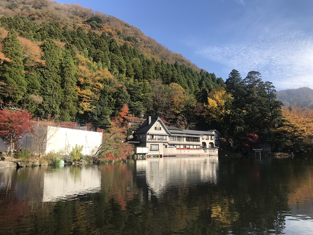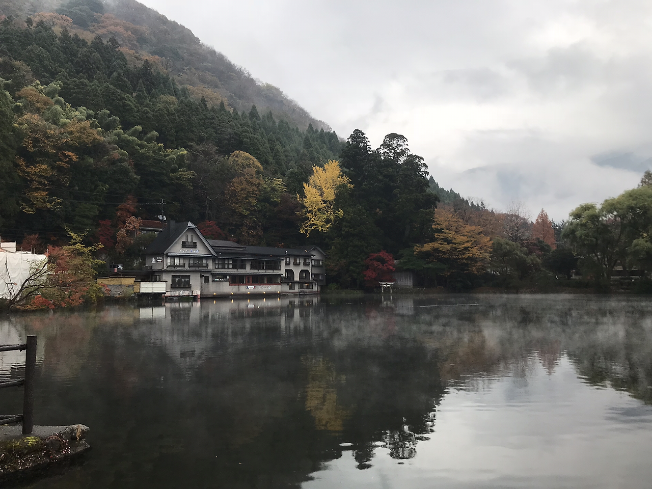 방으로 돌아와 짐을 챙기고 료칸의 송영서비스를 받아 다시 유후인역으로 돌아왔다. 어제처럼 인포메이션 센터에서 캐리어를 맡기고 자연스럽게 킨린코 호수로 발걸음을 옮겼다. 비가 오는 흐린 날씨 탓에 호수에 물안개가 피어오르고 있었다! 마치 누가 CG로 작업해놓은 것처럼 정말로 선명한 물안개가 살아있는 생물인 양, 서서히 이동하는 모습은 정말 장관이었다. 역시 여기는 새파란 하늘보다 회색빛 흐린 하늘이 더 어울리는 곳이었어! 마침 아직 단풍이 있던 시기여서 한 발짝 늦은 단풍놀이를 즐기고서, 아까 호수로 들어오며 봐 두었던 마메시바 카페를 가기로 했다.