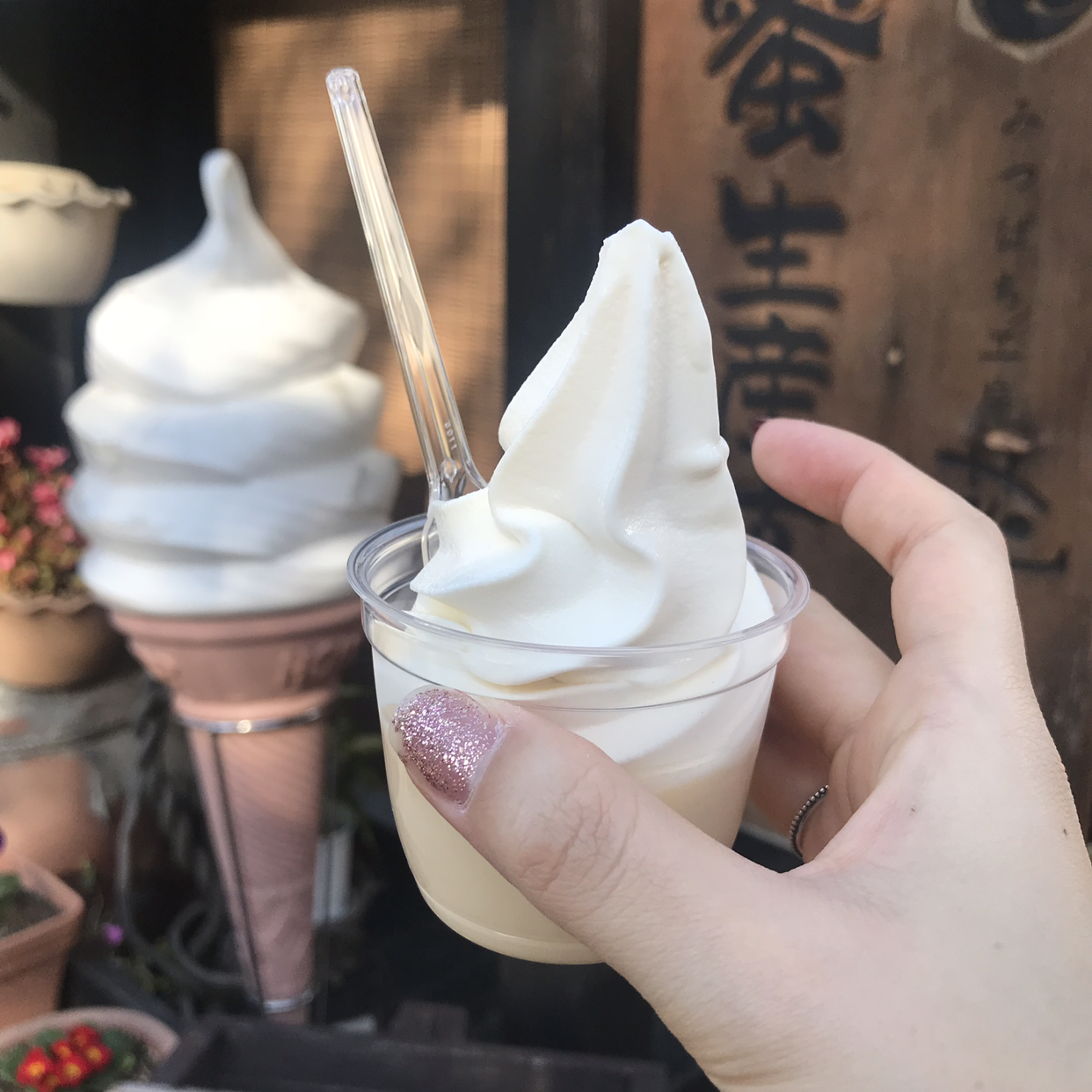 사실 7년 전에 유후인에 엄마와 한 번 와본 적이 있었기에, 이번에 혼자 가도 그리 낯설지 않겠군 생각은 했지만 직접 와보니 마치 한 달 전에 왔다 갔던 기분이 들 정도로 변한 것이 없었다. 그래서 7년 전처럼 금상 크로켓에서 크로켓을 먹고, 길가의 벌꿀 소프트 아이스크림 집에서 아이스크림을 먹고, 도토리의 숲(만화 이웃집 토토로에 나왔던!) 가게 앞에서 토토로와 사진도 찍었다. 롤케이크로 유명한 비 스피크에도 갔지만 롤케이크 작은 사이즈는 품절이라고 해서 지난번처럼 또 못 사 먹었다! 나름 오전 내 도착해서 구할 수 있을 거라 생각했는데 벌써 품절이라니, 여행지를 설렁거리며 다니는 나로서는 이번 생에 그 롤케이크 먹기는 틀린 모양이다.