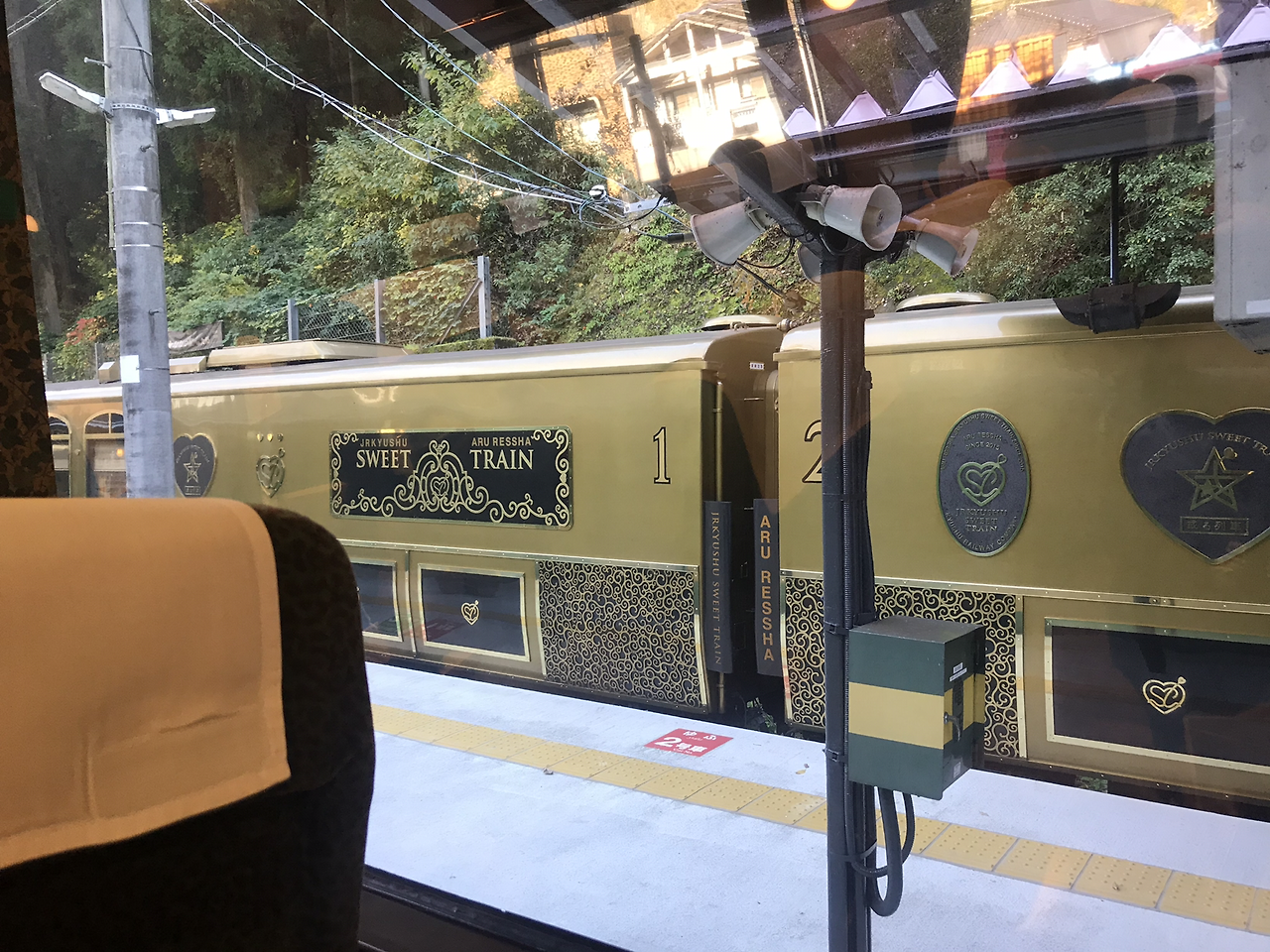 하루에 왕복 편 합쳐도 10편이 채 안 되는, 성수기에는 특히 예약하기 힘든 열차지만, 이번 여행에서 나는 운이 좋게도 왕복 편을 다 유후인노모리로 예약할 수 있었다. 열차 맨 앞칸 앞자리로 예약하면 달리면서 보는 전망이 압도적이라고 하던데 나는 늦은 시점에 겨우 예약한 거였기 때문에 열차 중간 자리로 예약. 하지만 색깔이 그라데이션 되듯 열차 창밖 풍경이 후쿠오카 도심에서 공장지대, 울창한 수풀, 일본 시골 가옥형태로 바뀌어가는 것을 보니 통유리 전망이 아니어도 지루할 틈 없이 즐거웠다.