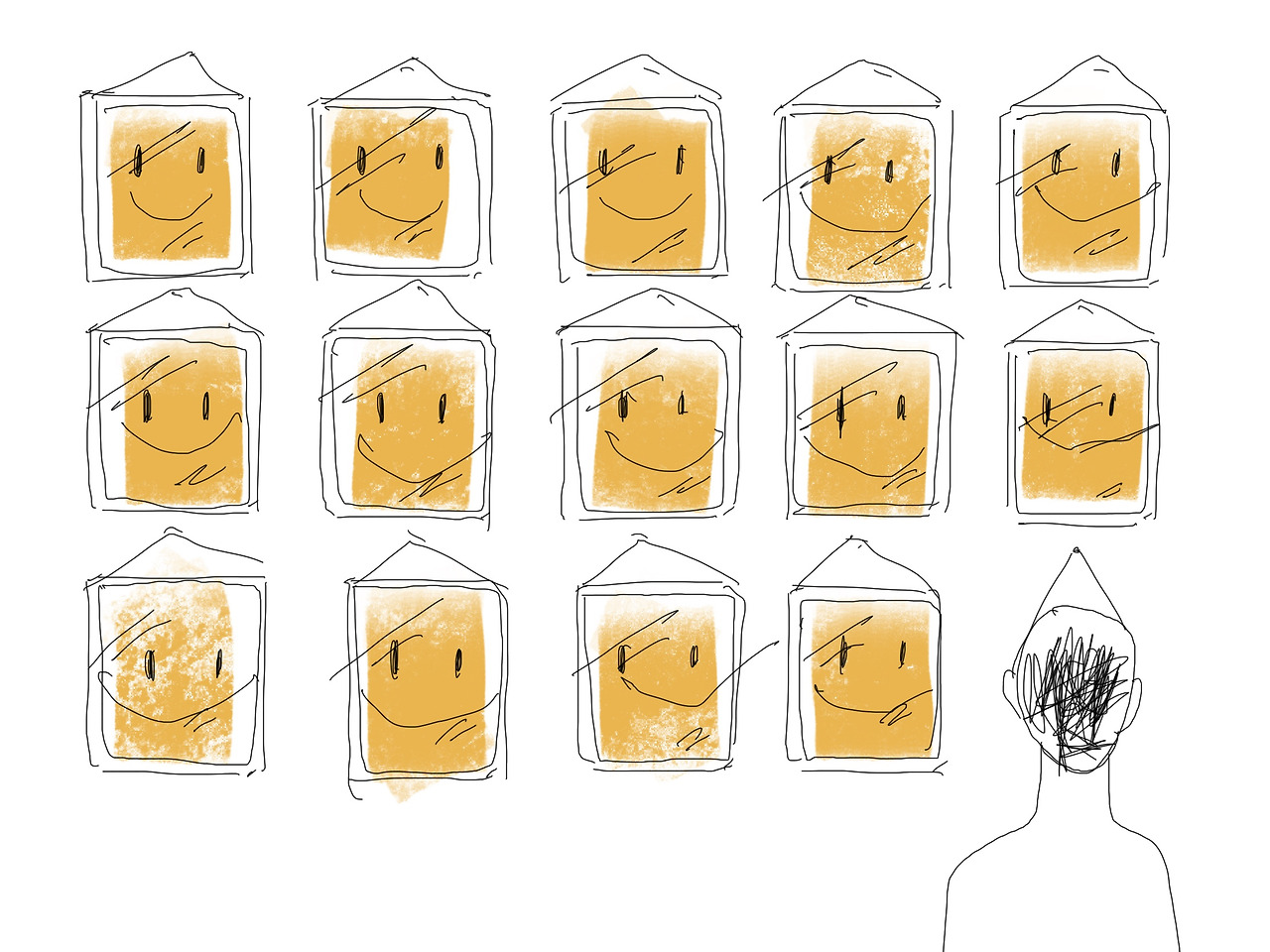 이 셀카들 속에 나는 얼마나 깊숙이 담겨 있을까. 이 사진들 속에는 타인에게 어떻게 보이고자 하는지는 드러난다. 가장 잘생겨 보이는 각도로 외적으로 좋게 보이고 싶었다는 것은 알겠다. 책장을 배경으로 찍은 게 유난히 많은 이유는 아마 지적인 인상을 보이고 싶어서 이겠지. 이건 정말 진짜 나 일까? 다른 사람의 눈에 비치는 나의 이미지는 일반화된 타자다. 사회심리학자인 미드가 세운 자아 이론의 개념이다. 자신이 속한 사회의 가치와 문화를 따르는 일반적인 가상의 타인의 모습을 자아에 반영한 것이다. 대상을 보는 주체로서의 나가 아니라 보이는 대상, 객체로서의 나는 사회의 요구를 따르며 사회에 적응하게 한다.