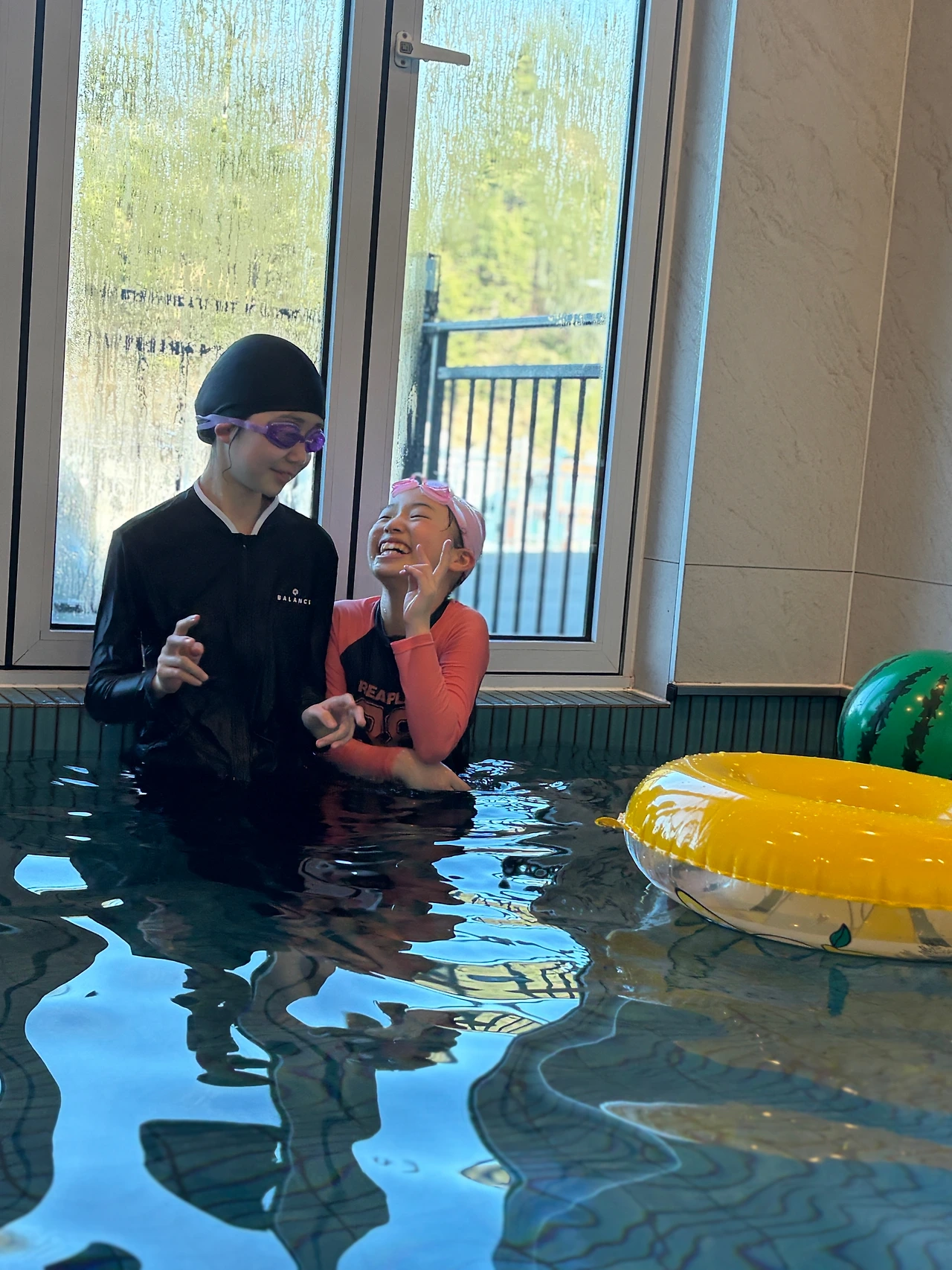온수풀은 아이들에게 가장 큰 선물이었다. 물이 따뜻해 겨울바람이 불어도 오래 놀 수 있었다. 2박 3일 머무는 동안 1번은 물놀이를 할 때나, 식사시간 외에는 침대와 한 몸이 되어 지냈다. 혼자서 게임을 하거나 만화책을 보며 뒹굴뒹굴~ 생일 주인공다운 휴식이었다. 사춘기가 오는지 이제는 같이 어울리기보다 혼자 즐기는 시간이 더 많아져 조금 아쉽긴 했다. 그와는 달리 2번은 물놀이도 하고 엄빠와 함께 영화도 봤다. 넷플릭스와 유튜브가 모두 연결되어 있어 저녁 시간이 심심할 틈이 없었다.