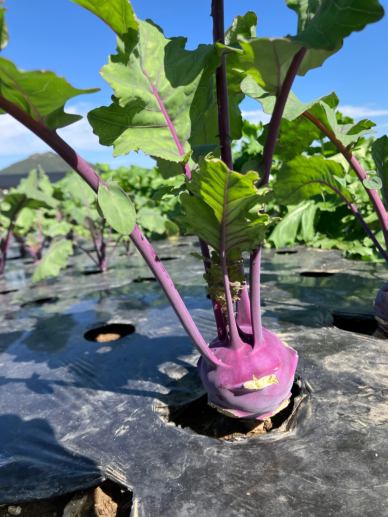 무엇보다 눈에 들어왔던 건 색이었다. 텃밭에는 대부분 초록색 작물들이 자란다. 상추도, 쑥갓도, 시금치도 모두 비슷한 초록이다. 그런데 그 사이에 보라색 콜라비가 하나씩 자리 잡고 있으니 묘하게 눈에 띄었다. 초록 사이에서 혼자 다른 색을 띠고 있는 모습이 특별해 보였다.