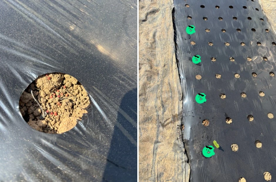 수확 시기가 되면 밤호박 농사로 바빠질 것을 알기에, 이번에는 간격을 조금 더 넓혔다. 30cm 정도로 띄워 심어, 잎이 서로 부딪히지 않고 충분히 퍼질 수 있도록 자리를 내어주었다. 한 포기 한 포기가 제 몫을 다해주길 바라는 마음이었다.