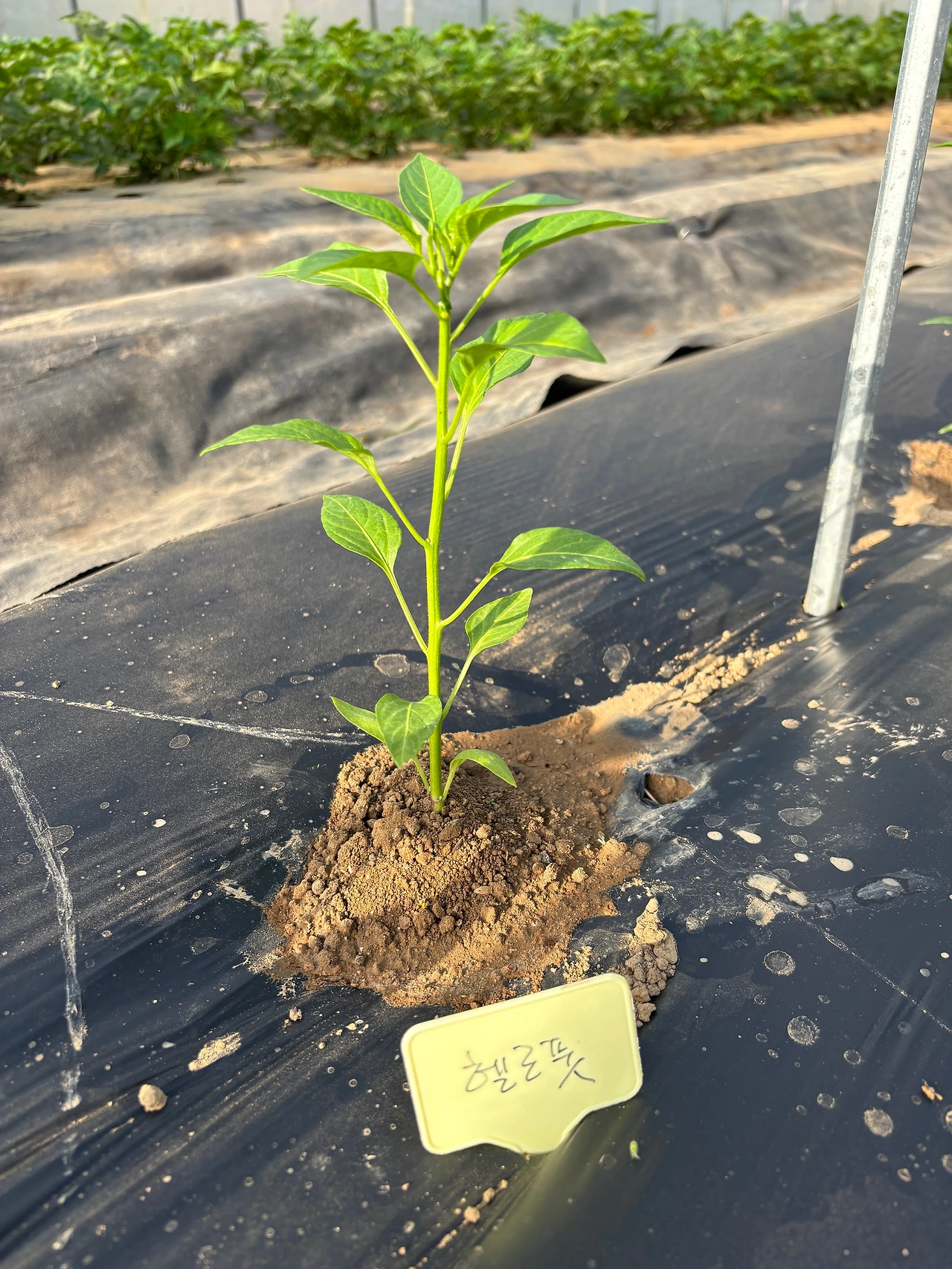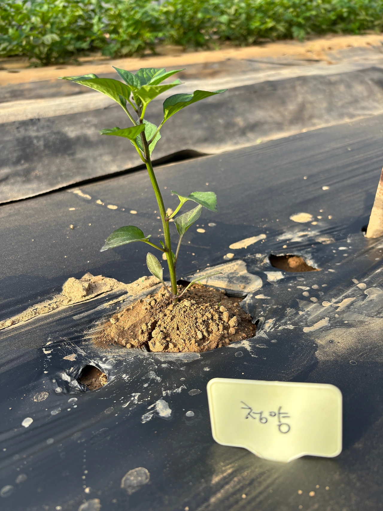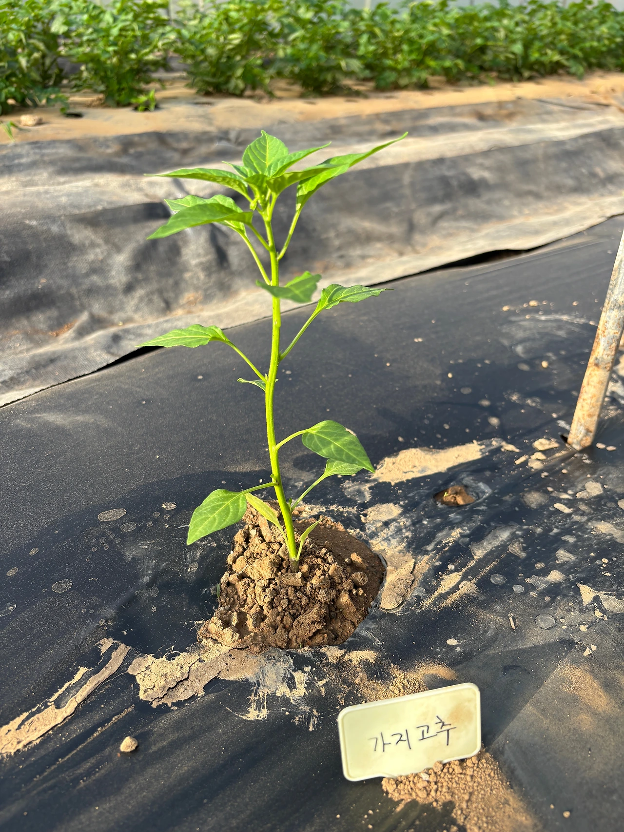 올해는 오이고추 대신 헬로풋을 선택하고, 당조고추, 가지고추, 청양고추까지 네 가지로 정했다. 오이고추나 헬로풋이 풋고추 계열로 품종이 겹쳐서 헬로풋을 선택했다. 지난 4월 8일, 총 6개의 고추 모종을 비닐하우스 안에 심었다.