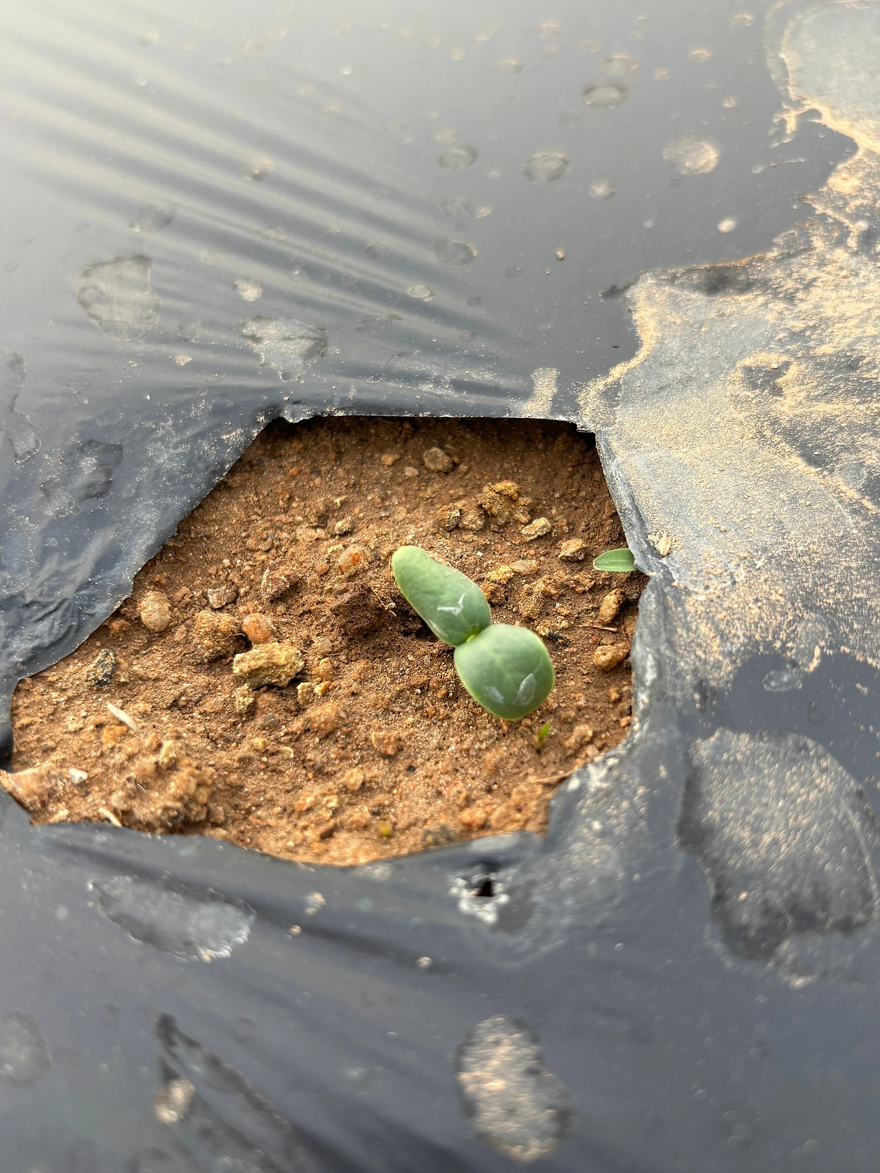 비닐하우스에 직파하더라도 기온이 올라야 싹이 트니 매년 4월 초순에 파종했다. 올해도 4월 10일, 하우스에 씨앗을 넣었다. 60cm 간격으로 구멍을 만들고, 두개씩 넣고 흙을 덮었다. 작년에는 씨앗을 물에 불렸지만, 올해는 그냥 그대로 심었다. 대신 아침, 저녁으로 물을 줬다.