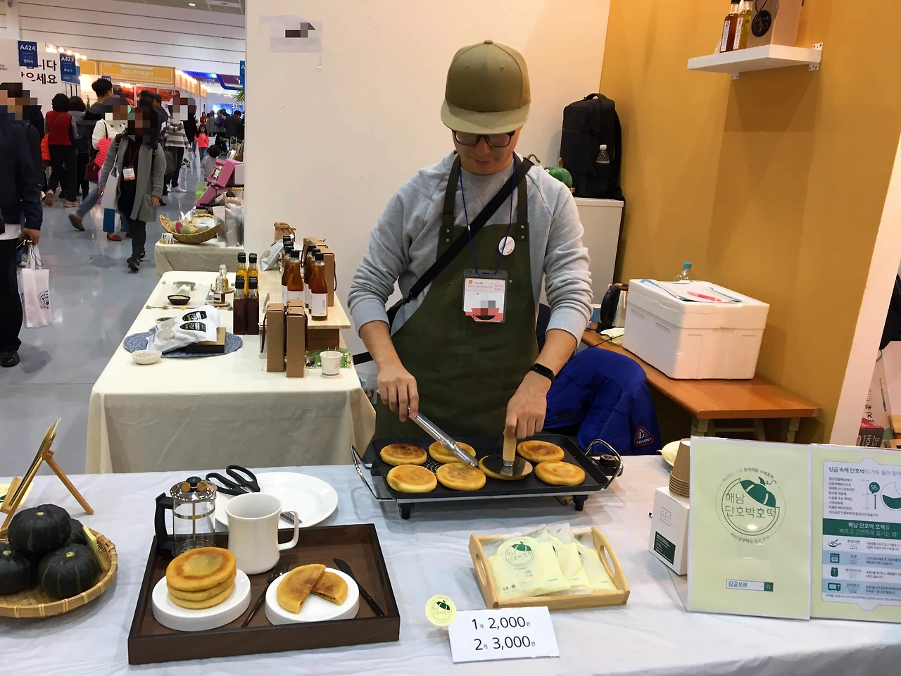 그때부터 농부님은 박람회를 찾아다니며 호떡을 팔기 시작했다. 다행히 해남군에서 참여하는 박람회에 함께 참석할 수 있는 기회들이 많이 주어졌고 봉지를 뜯어 즉석에서 데워 저렴한 가격으로 판매를 시작했다. 맛있는 냄새를 풍기며 호떡은 잘 팔렸고 냉동고의 호떡 중 일부를 소진할 수 있었다.