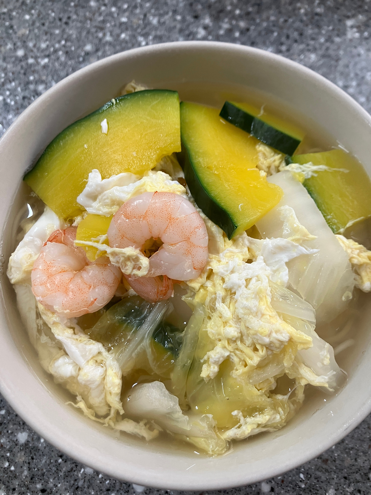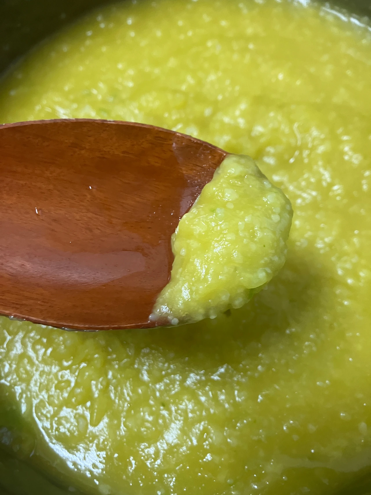 호박을 삶은 뒤 쌀을 불리는 대신 햇반을 데워서 함께 윙~~~~~~ 껍질을 얇게 깎아서 노랑노랑하지 않고 약간 연둣빛이 도는 호박죽이 되었다. 이모냥 단호박이 사이즈가 어찌나 큰지 1/4만 호박죽으로 사용했다. 우리 네 식구의 든든한 아침이 되었다.