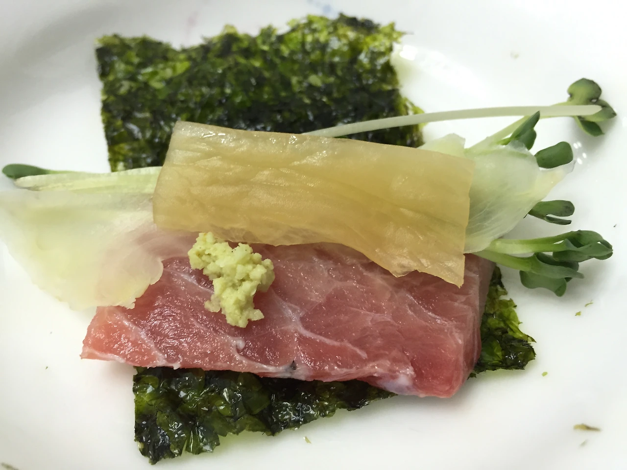 무순은 입을 개운하게 해 주는 것이지 참치와 함께 먹으면 진정한 참치의 맛을 느낄 수 없다고 나무라셨다. 이 방법으로 먹으면 확실히 참치 맛이 더 느껴지긴 한다. 다만 참다랑어의 경우 특유의 비릿한 맛이 좀 더 느껴져서 개인적으로는 그냥 그랬다.