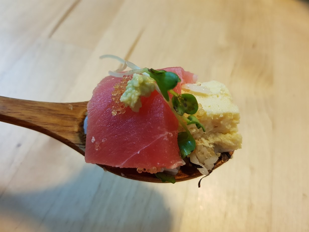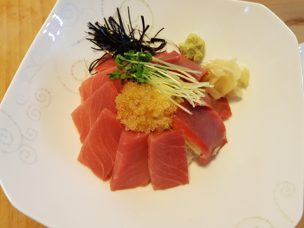그리고, 참치와 날치알, 무순, 김, 초생강, 생와사비를 올리면 완성.