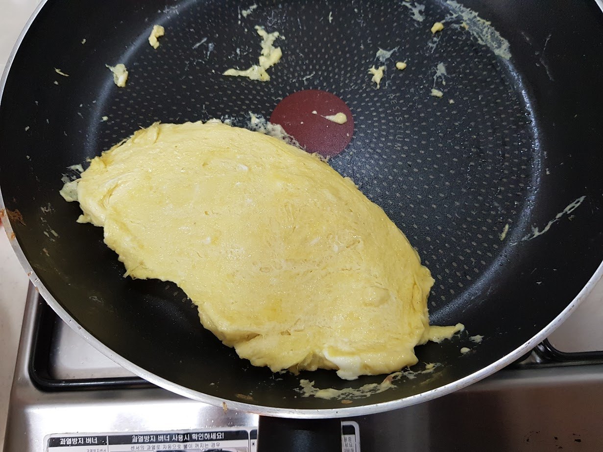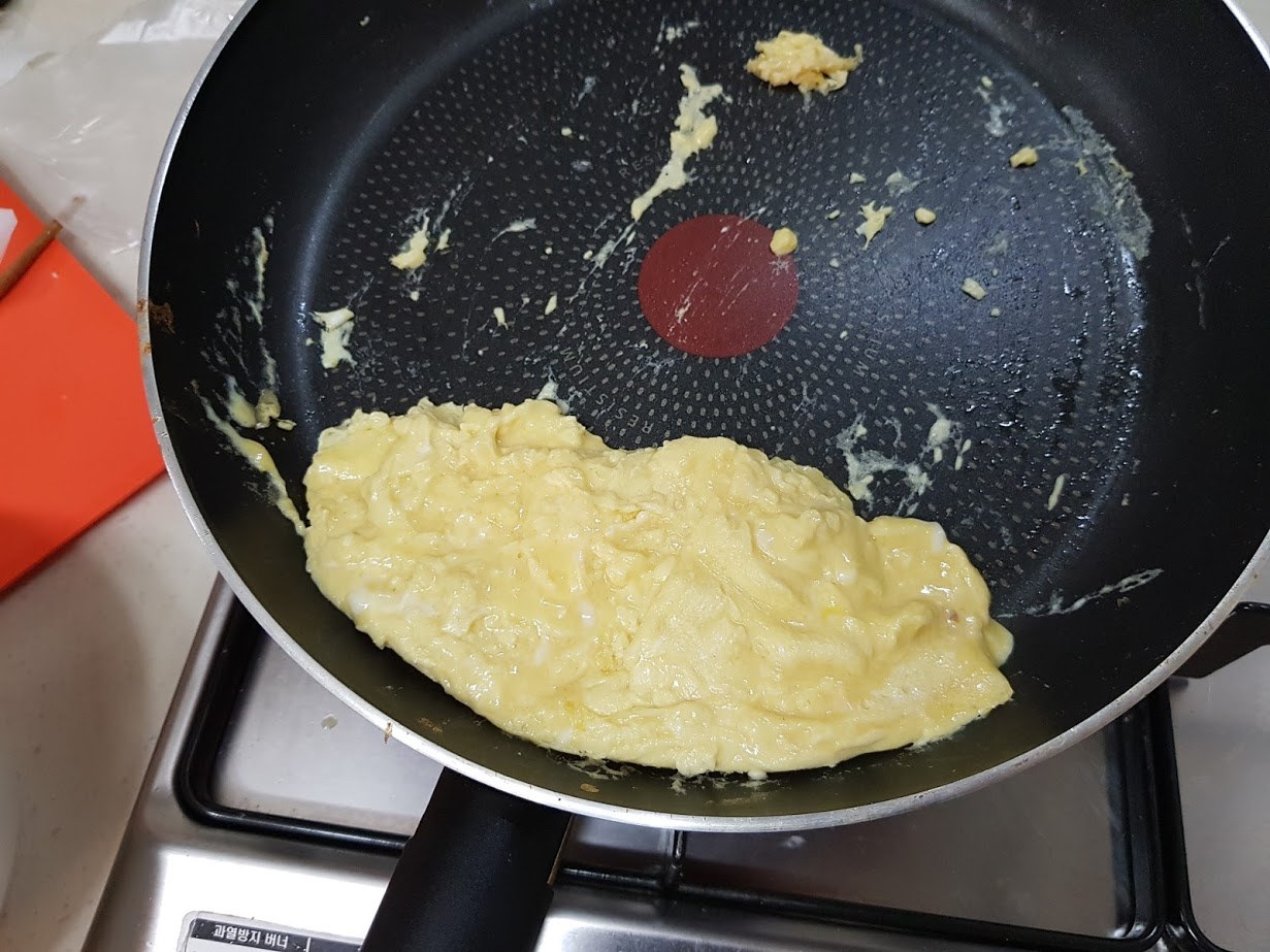 스크램블 하듯이 조금 뒤섞어 주다가 뒤집으면..