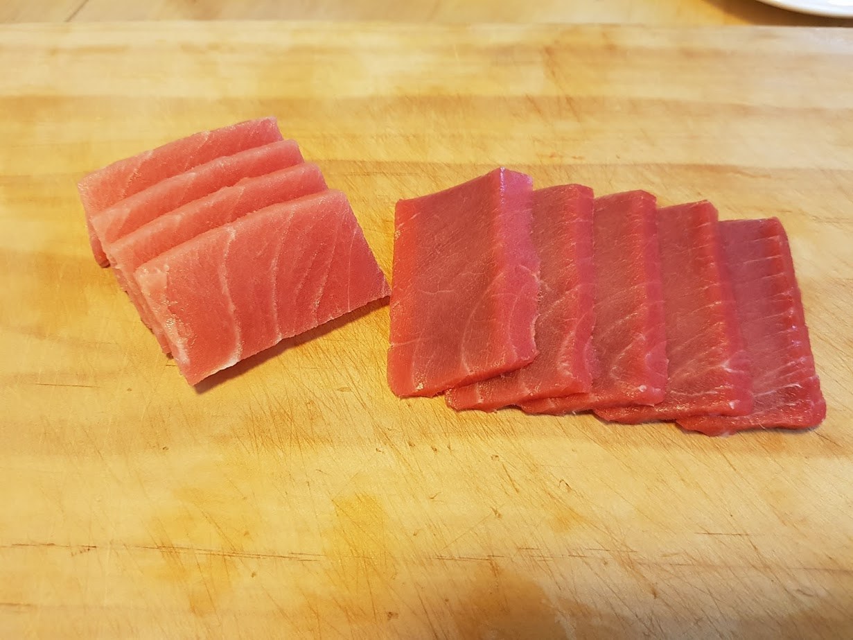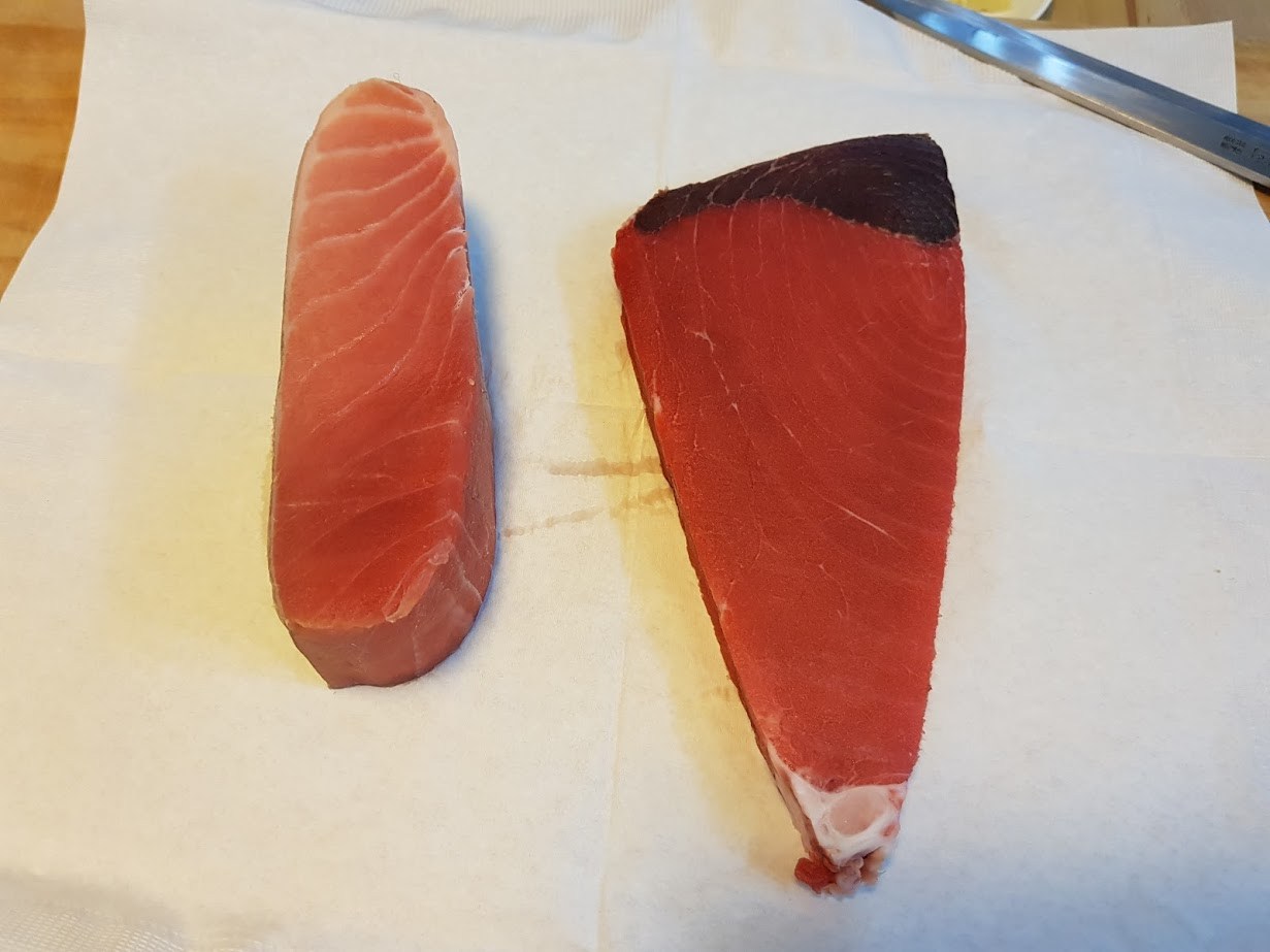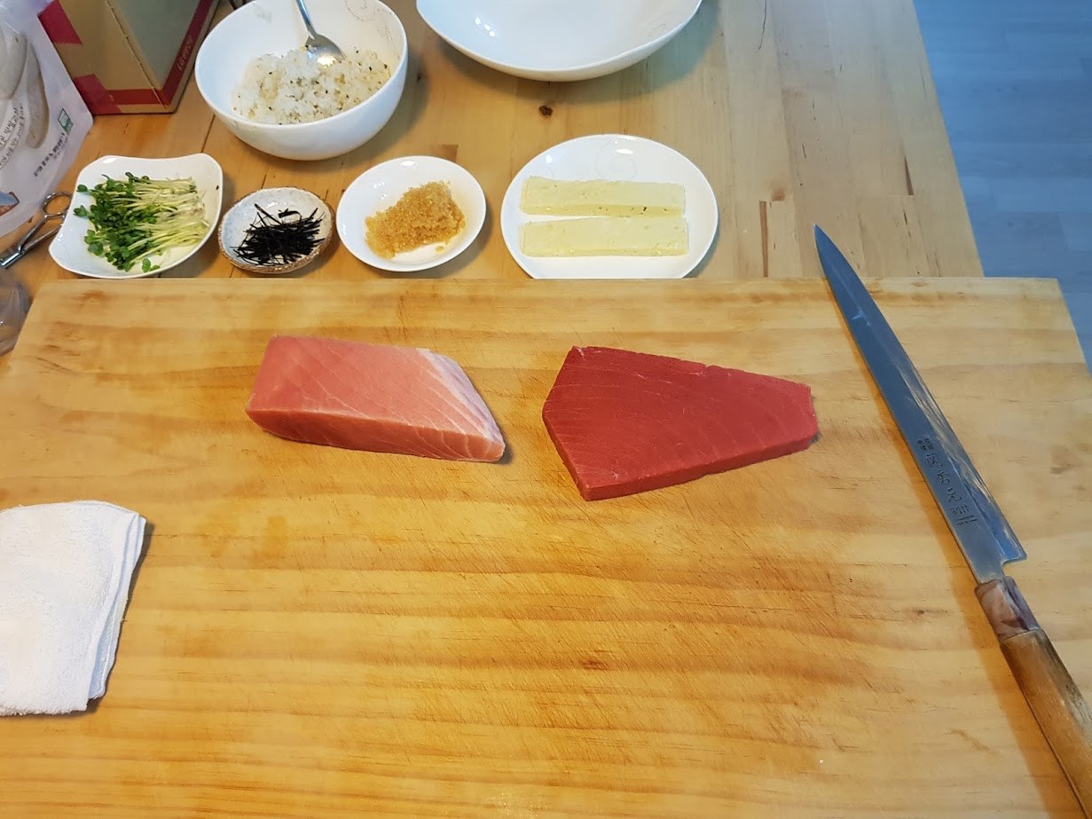 마지막으로 참치를 준비한다. 오늘 쓰일 참치는 남방참다랑어(미나미) 뱃살과 참다랑어 속살(아카미)이다.