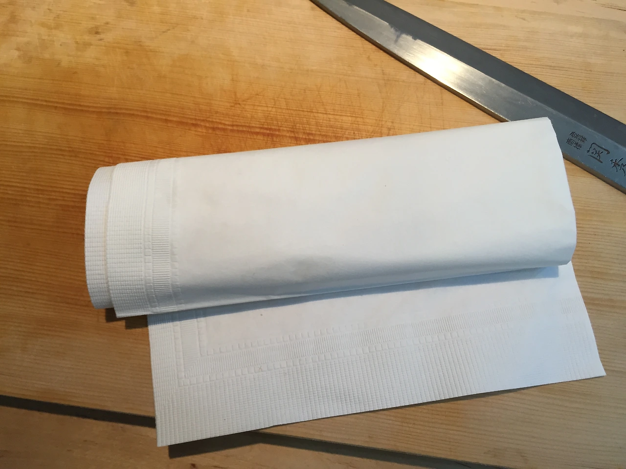 익힌 아카미는 해동지나 키친타월로 한 번 닦아내준다.