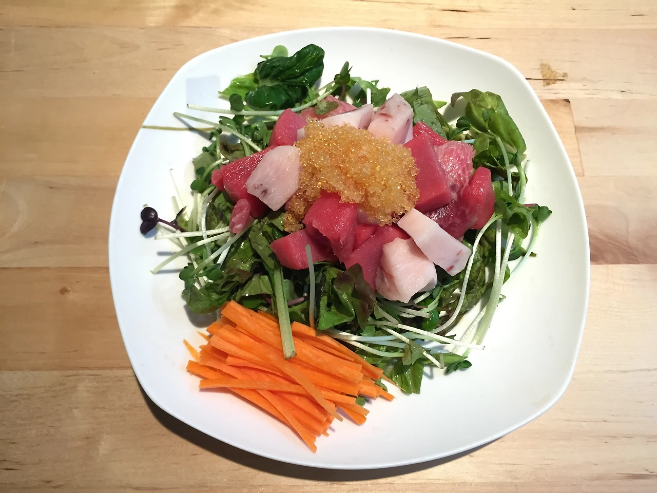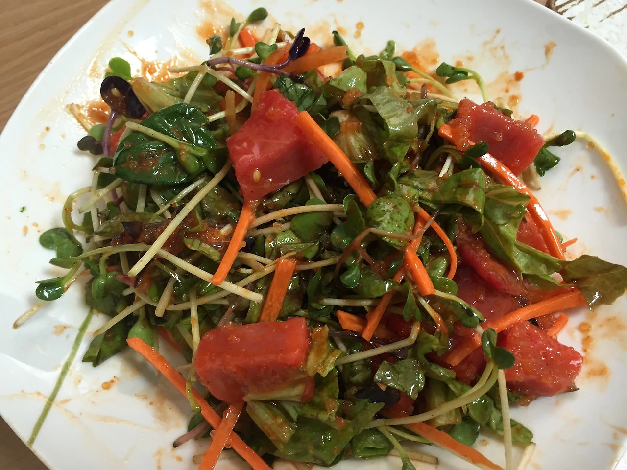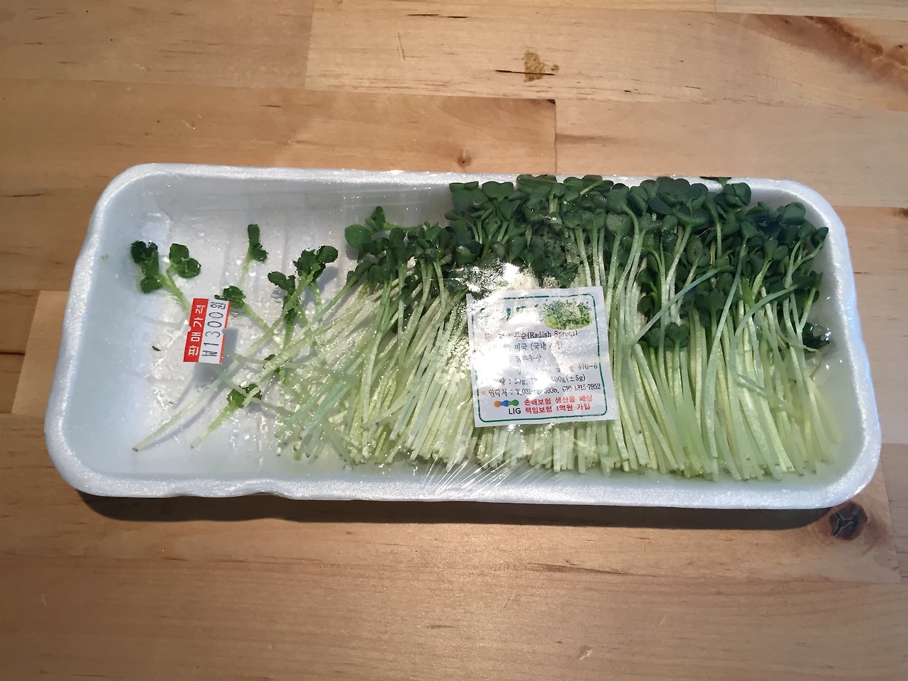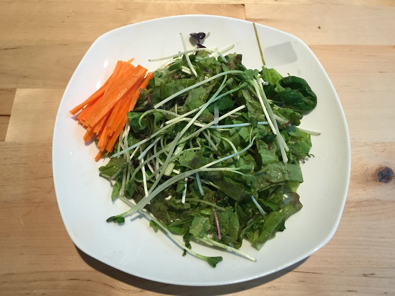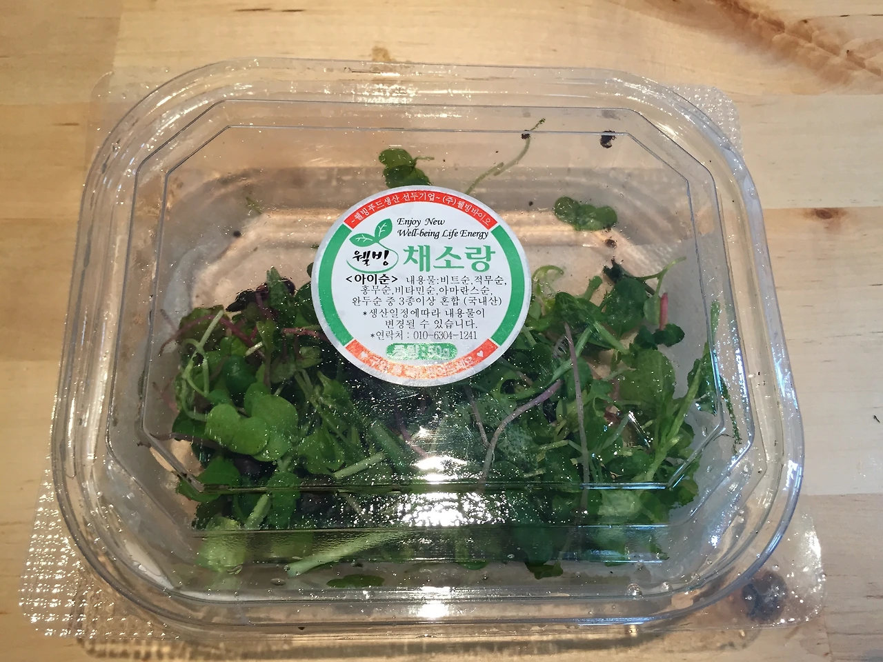 냉장고를 뒤지니 이전에 회덮밥 할 때 쓰다 남았던 모둠 채소 약간과 무순, 그리고 삼겹살 먹다 남은 상추 약간이 있었다. 그리고 당근도 조금.