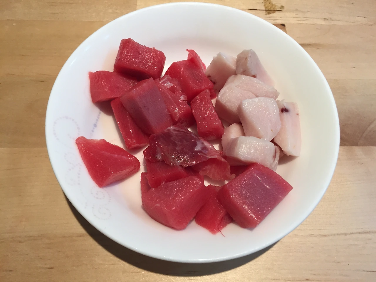 참치는 눈으로 먹는 음식이라는 말처럼, 예쁘게 썰어내는 건 참 중요하다. 하지만 이 과정에서 어쩔 수 없이 삼각형, 오각형 같이 못 생긴 애들이 생기기 마련이다.