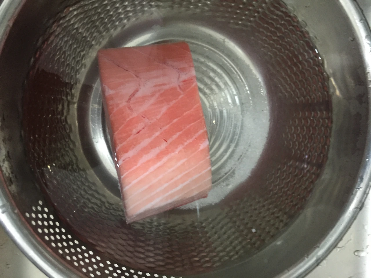 참치를 먹을 땐 처음에 해동이라는 과정을 거치는데, 해동은 말 그대로 얼어있는 참치를 녹이는 과정이다. 소금물에 5~15분 정도를 담가두고 꺼내면 된다.