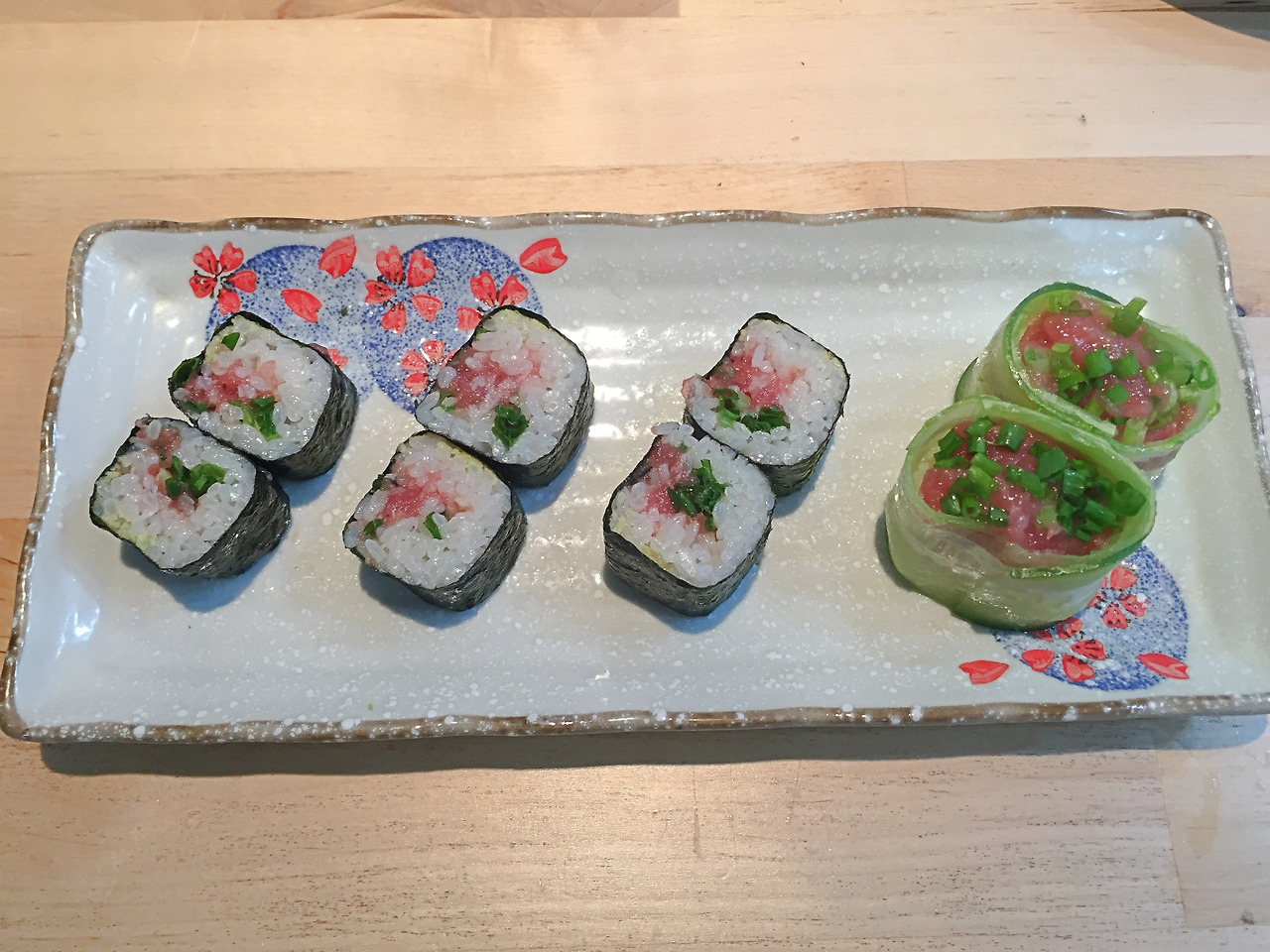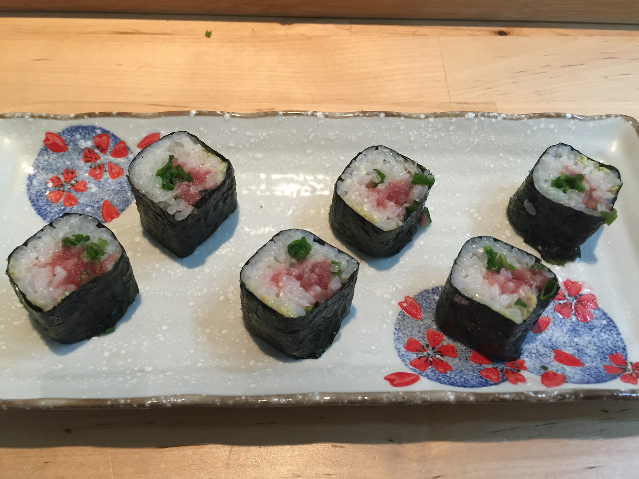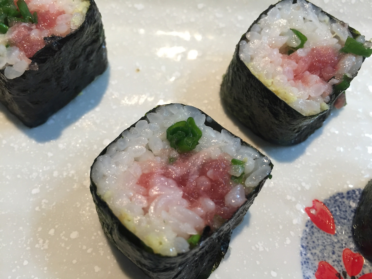 이제껏 참다랑어 뱃살을 먹으면서 가장 맛있게 먹은 것 같다. 부드러운 참치와 톡 쏘는 파와 와사비, 고소한 김의 향과 묵직한 밥의 맛이 훌륭하게 조화를 이룬다.