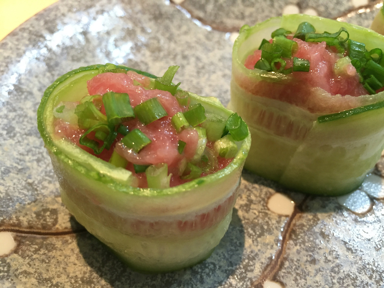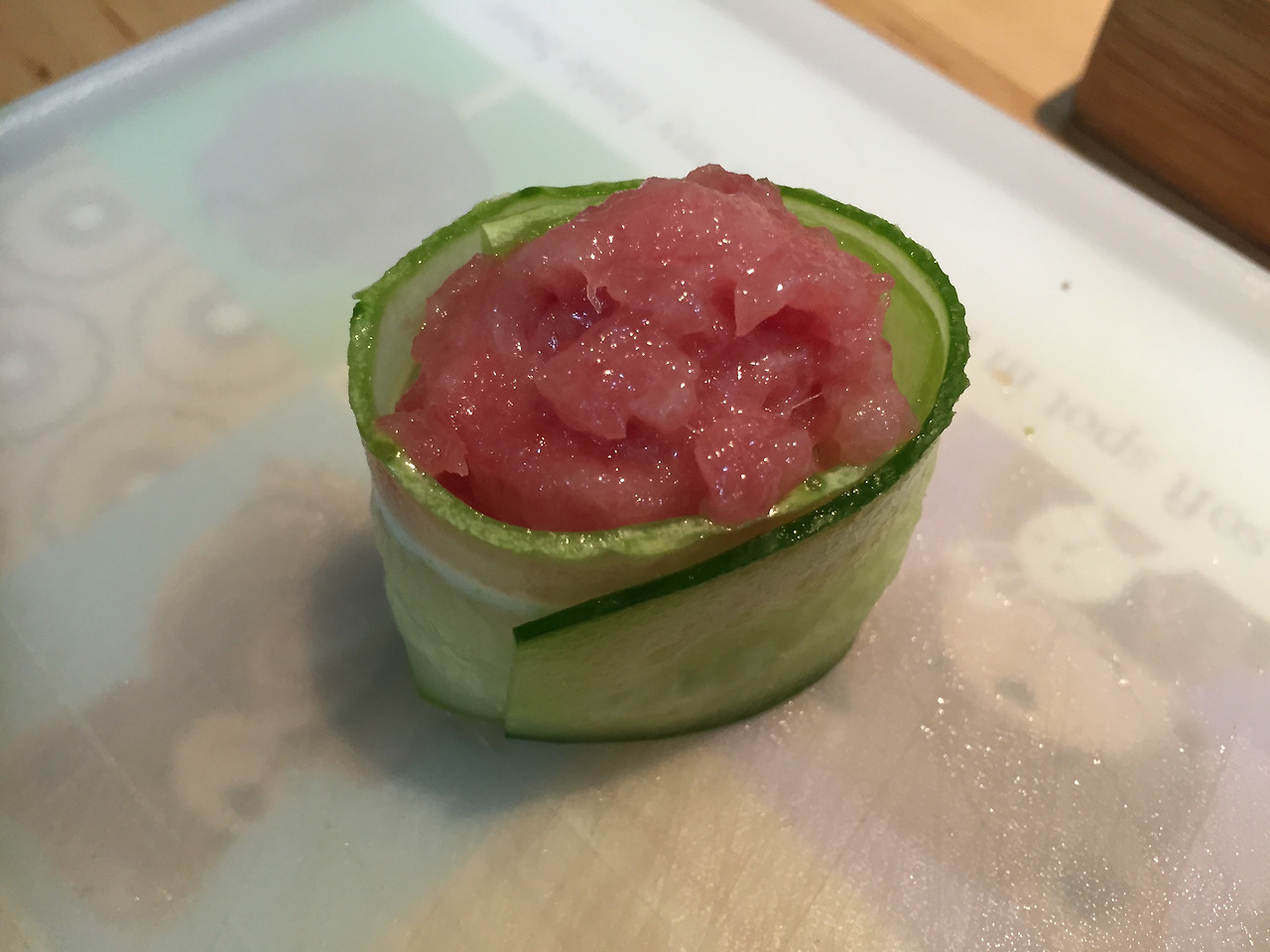 개인적으로 이 음식은 별로였다. 보기엔 예쁘지만, 오이 향이 너무 강해 파와 참치의 맛을 거의 느낄 수 없었다. 그러나 회를 좋아하지 않는 와이프는 이제껏 내가 만든 참치 요리 중에 가장 맛있었다는 놀라운 후기를 남겨주었다.