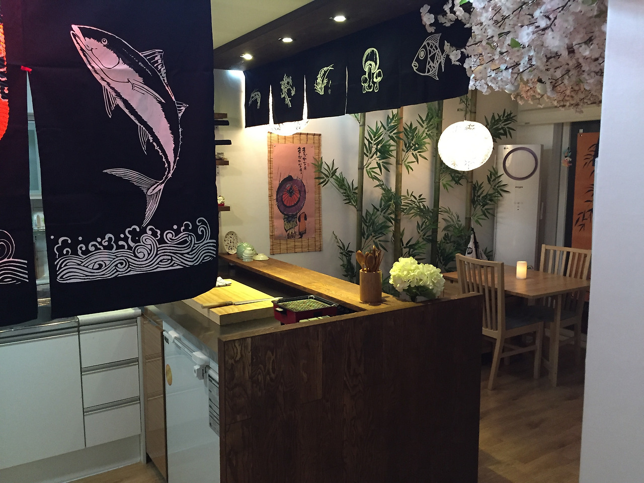 주방과 자연스럽게 연결되어 있는 나무도마와 Bar, 대나무와 벚꽃, 모든게 다 아기자기 했지만 갖출것은 다 갖춘 작은 이자카야 느낌이었다.