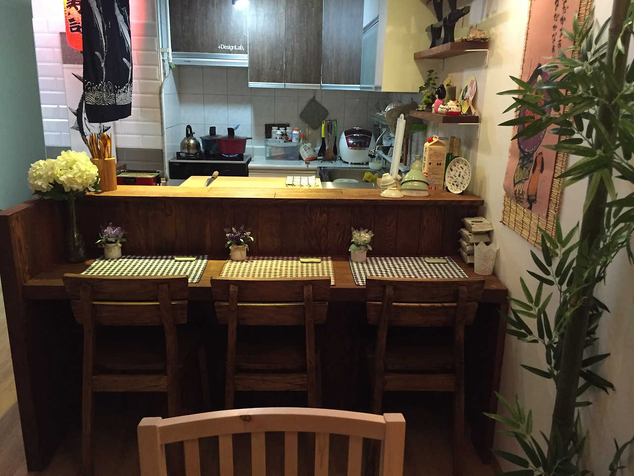 집이 꾸며진 모습을 처음 봤을 때 난 진심으로 기뻣다. 정말 촬영 내내 계속 웃었다. 가식이 아니라 정말로 그냥 웃음이 계속 났다. 다찌(bar)를 만들고 참치냉동고가 있을꺼란 예상은 했지만 좁은 거실에 너무 자연스럽게 녹아져 있어서 감탄을 금하지 않을 수 없었다.