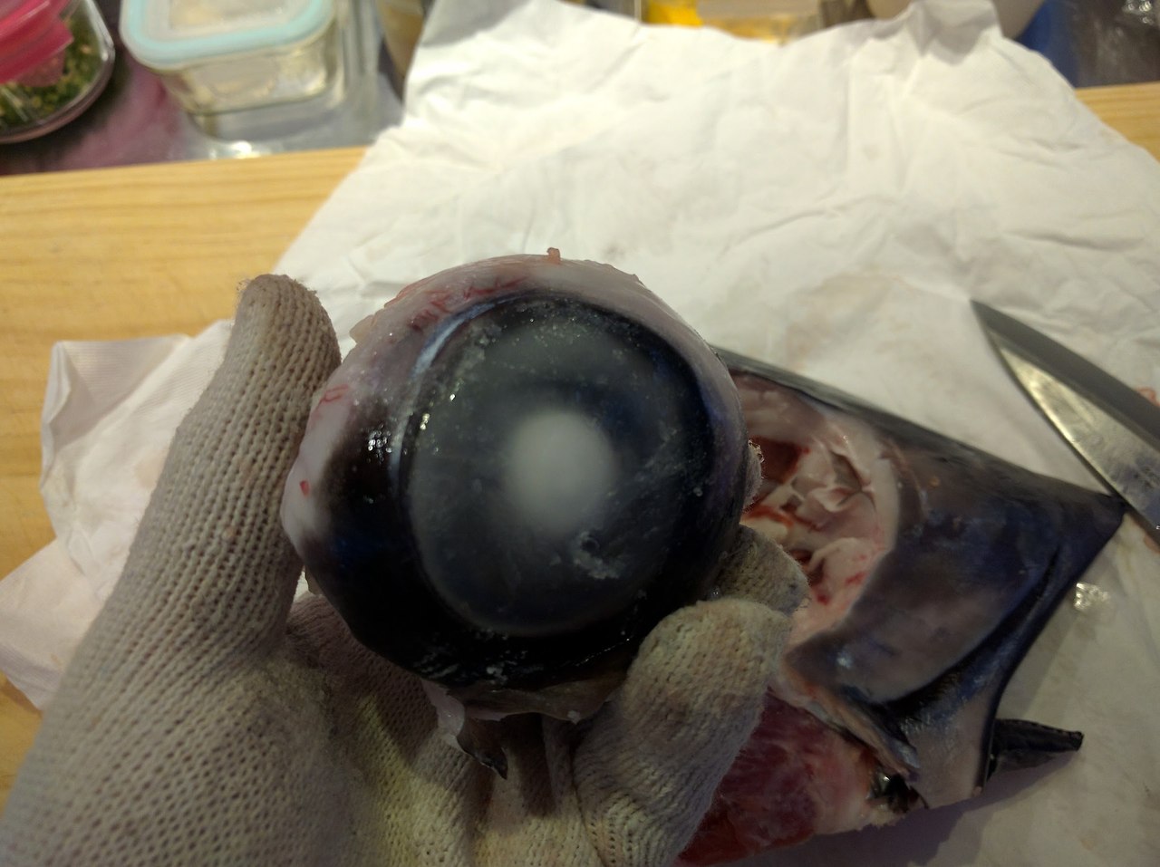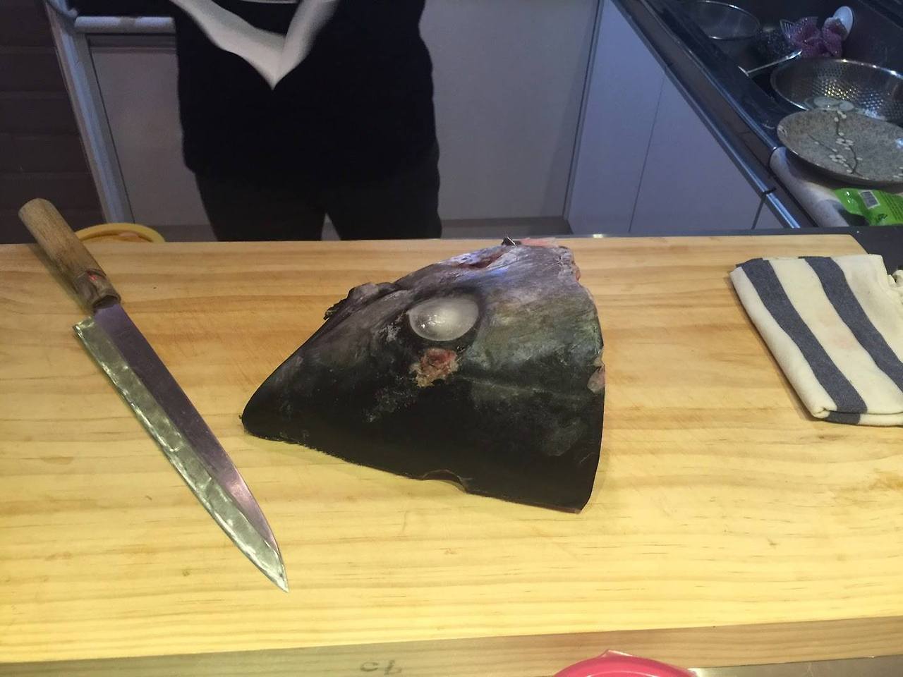 이제 머리를 준비한다. 사실 머리 해체는 쇼에 가깝다. 딱히 먹을만한 양이 많이 나오는 것도 아니고, 머리 자체의 단가도 높지 않다.(참치집에서 귀한 손님이라고 머리 주는 거에 괜히 감동하지 말자.ㅋㅋ)