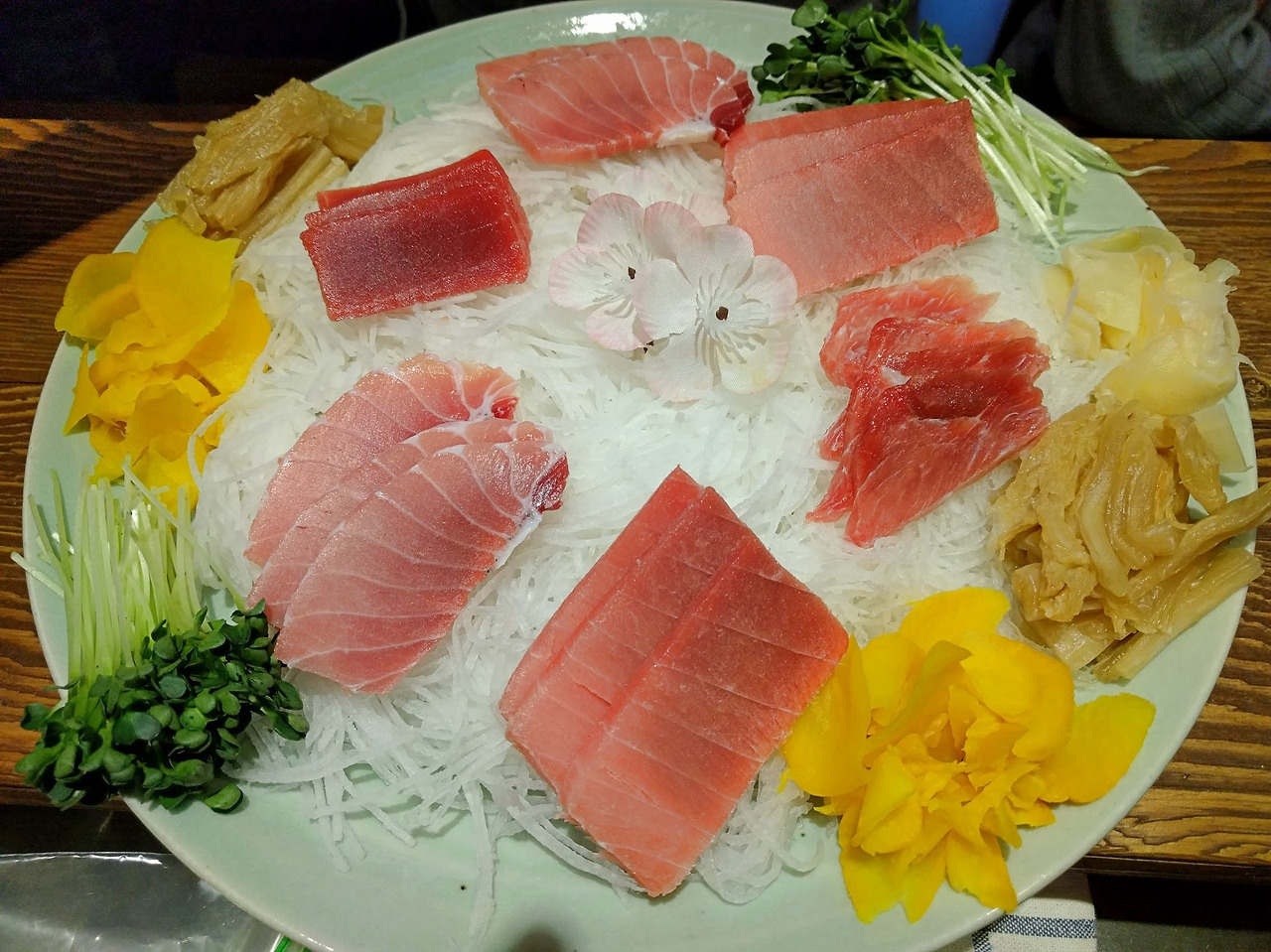 요리는 그날그날 약간씩 다르긴 했지만, 보통 타다키와 마구로즈케(간장절임 참치) 그리고 생선구이를 냈다.