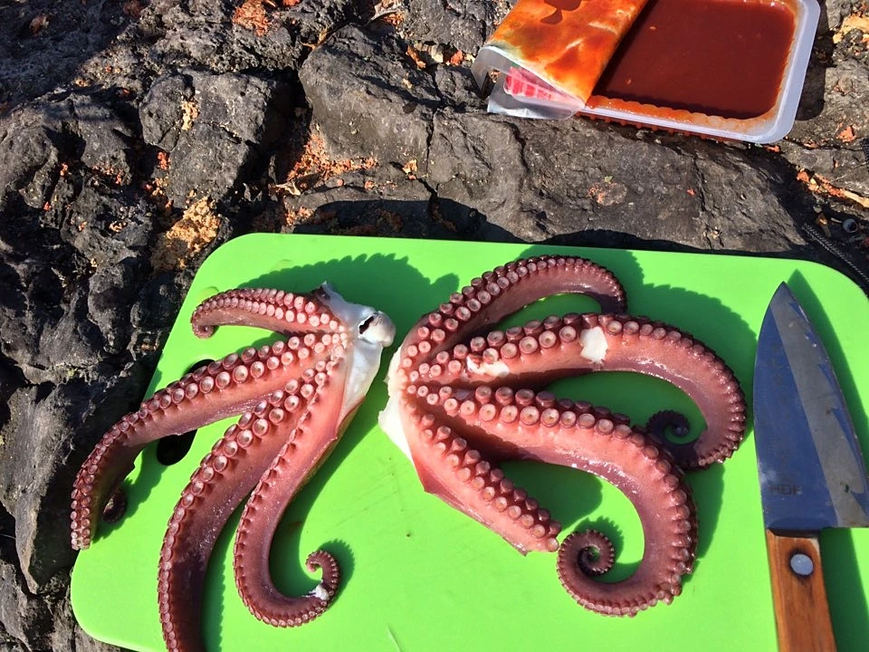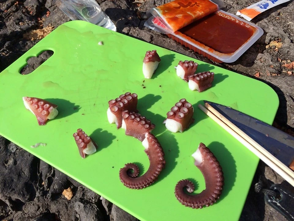 문어는 회로 먹지 않기 때문에 좀 난감해졌다. 휴대용 버너가 있긴 했지만, 가져온 냄비는 컵라면 끓여먹으려고 가져온 조그만 것 밖에 없었기 때문이다. 오징어 낚시도 실패한 마당에 이거라도 먹어야 할 것 같은데..