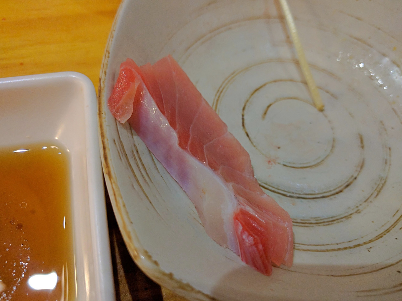 느끼함에 질려할 때쯤 참다랑어 속살(아카미)을 준다. 눈다랑어가 아닌 진짜 참다랑어 속살이었다. 3만 원대 가격에 이런 건 처음 먹어본다. @.@