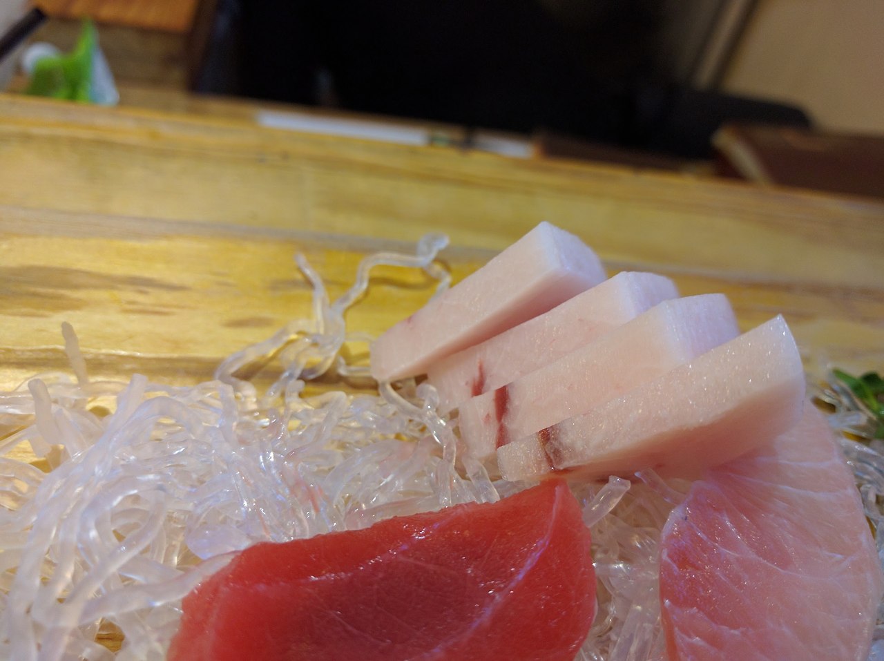 내가 가장 좋아하는 부위인 눈다랑어 가마 부위가 나왔다. 참다랑어와 달리 눈다랑어 가마 부분은 사각거리는 맛이 일품이다.
