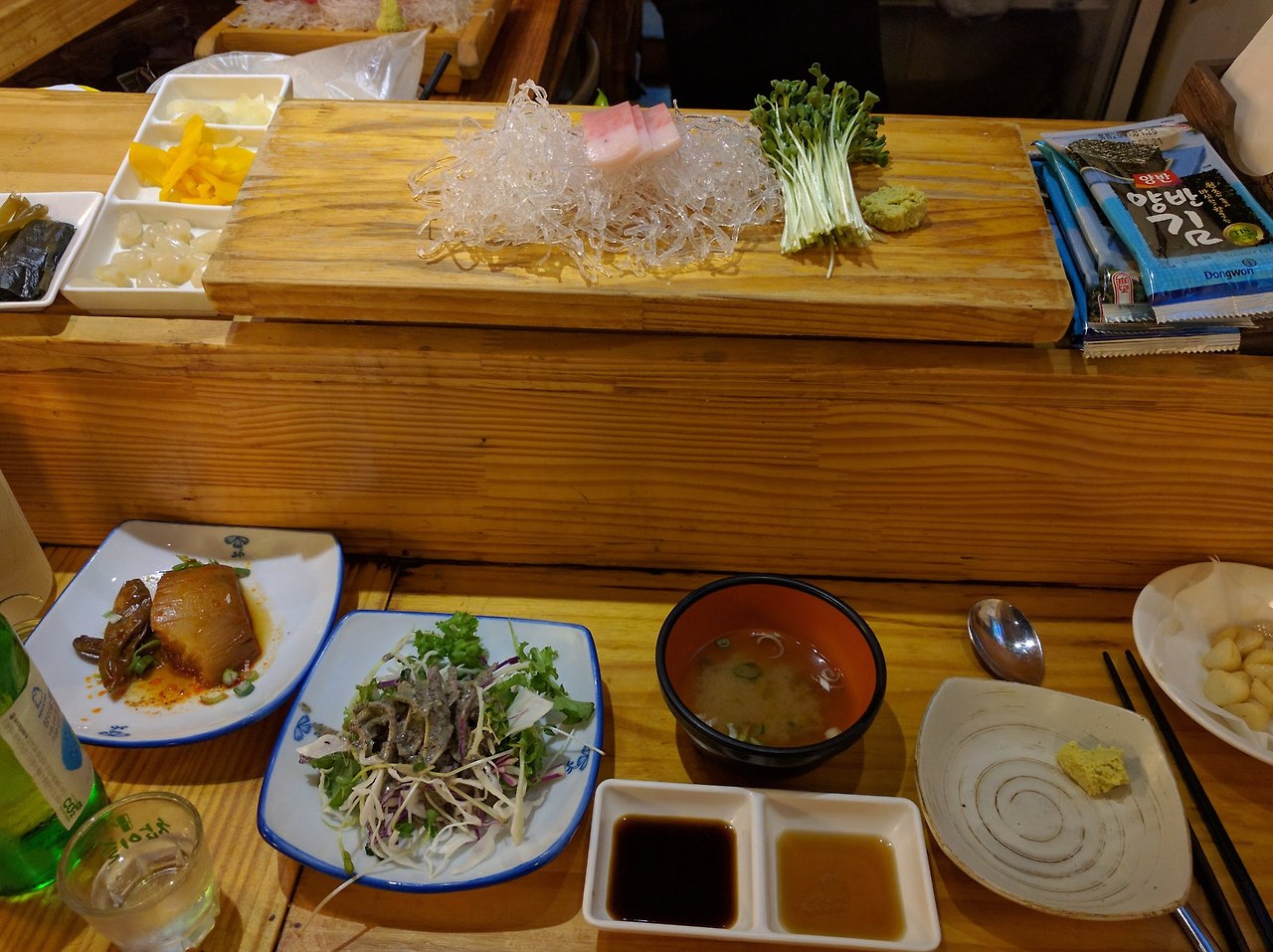 여하튼 내가 간 곳은 미금 분점이었다. 가게는 작고 아담했는데 테이블 4개 정도에 다찌는 5~6명 정도 앉을 수 있는 크기였다.(나중에 알고 보니 안쪽에 방이 여러개 있었다)