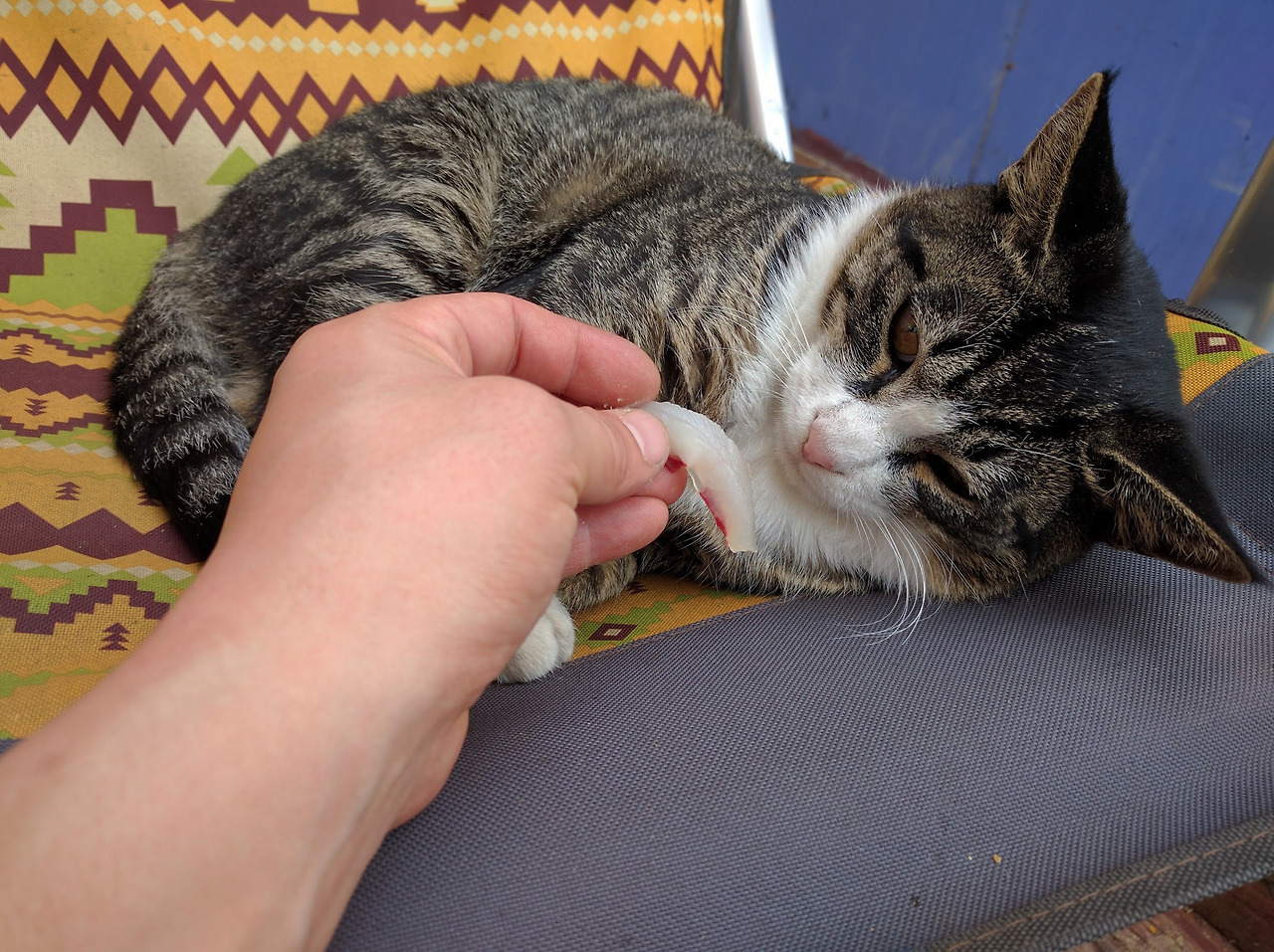 회가 남아서 옆에서 자는 고양이한테도 몇 점 주고..
