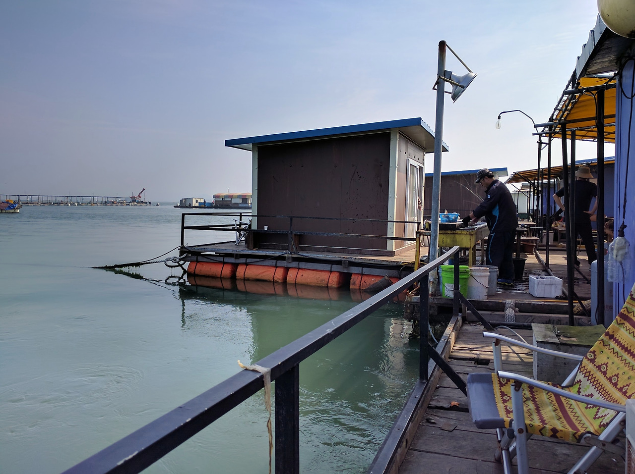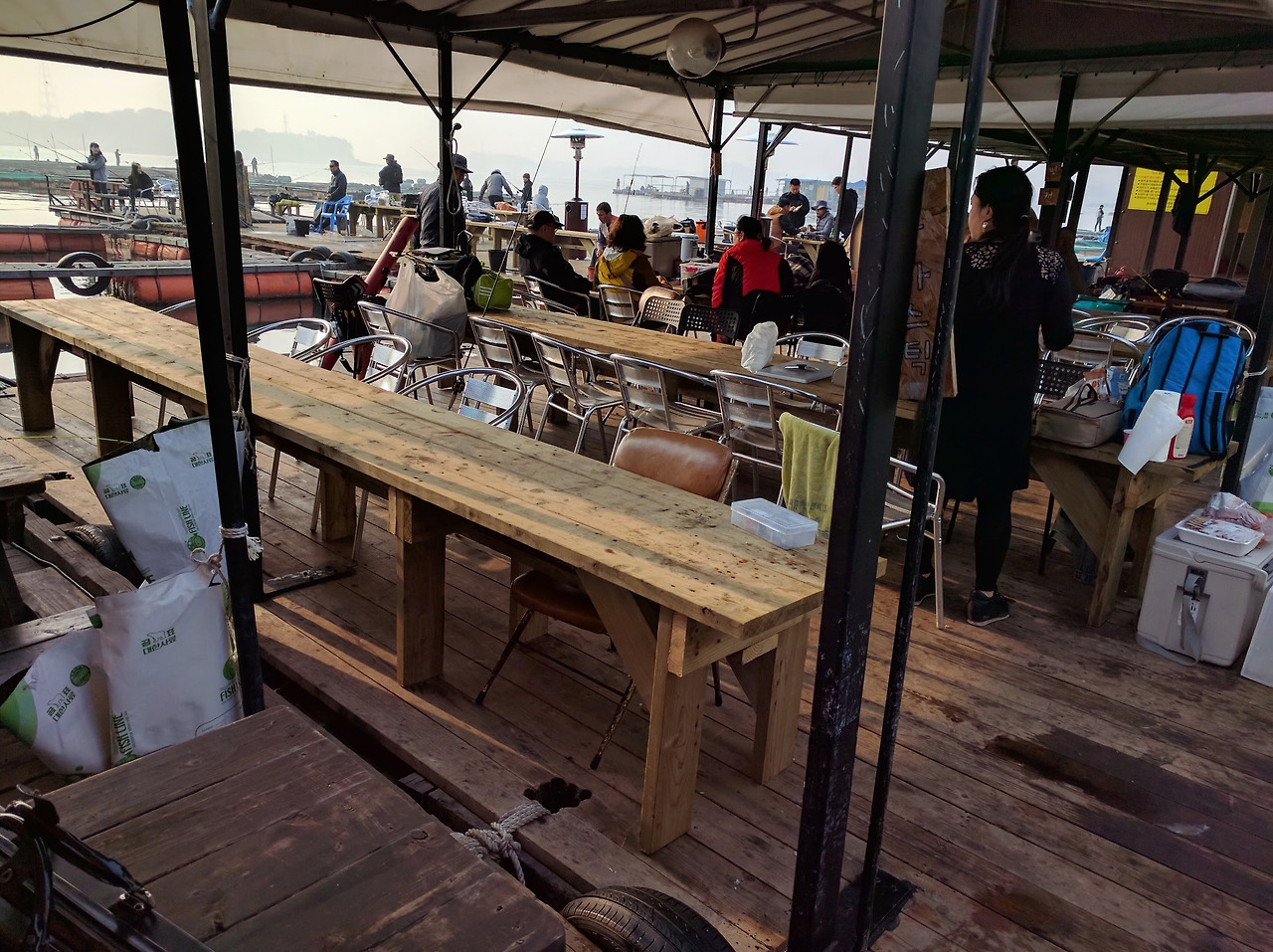 조그만 집 한 채가 물 위에 떠 있는 민물 좌대만 가본 나에게 바다 좌대는 신세계였다. 족히 200명은 즐길 수 있을만한 엄청난 공간이 바다 가운데 떠 있고, 낚시하는 옆에서 고기도 구워 먹을 수 있어 가족 단위로 오는 사람도 많았다.